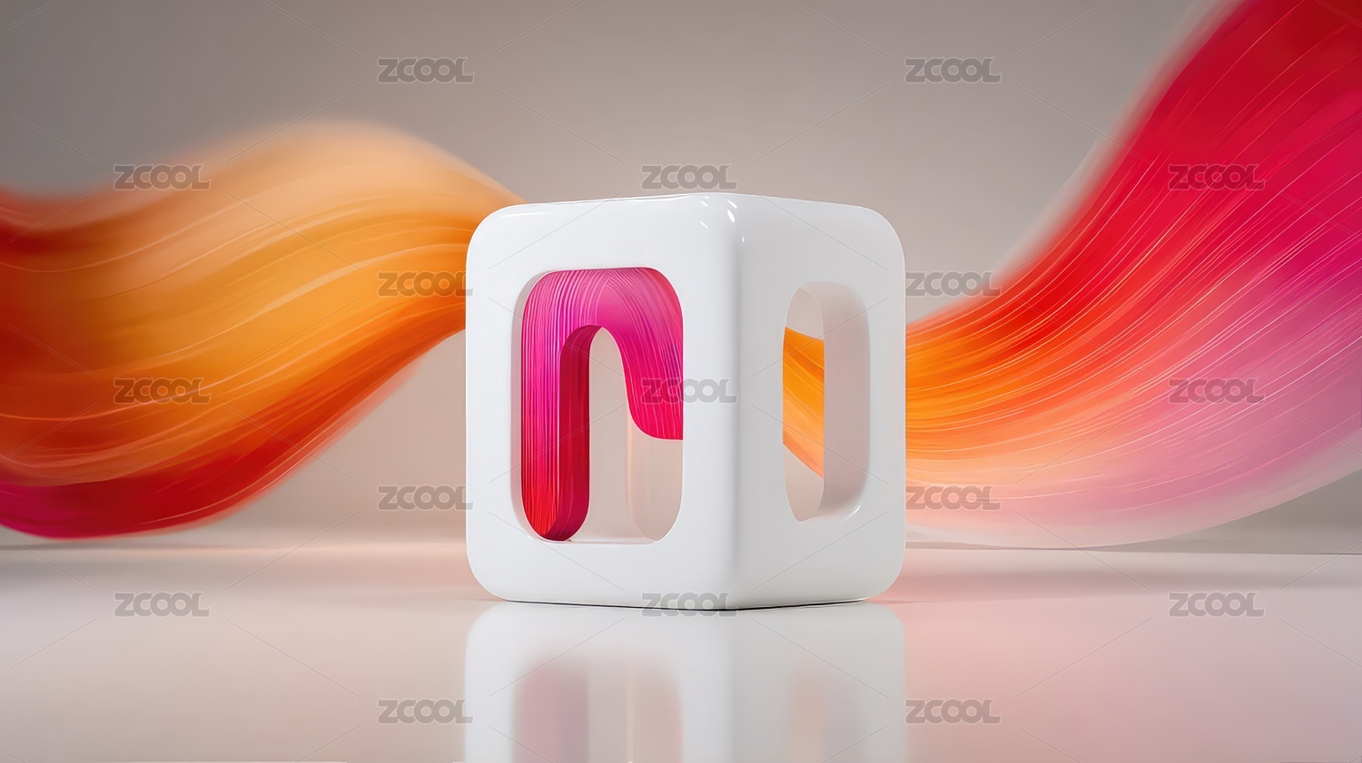 白色立方体与彩色背景
