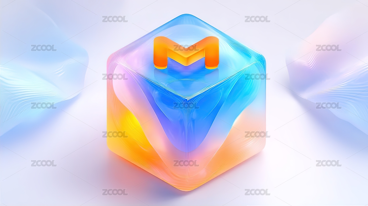 3D立方体橙色M字母简约设计感十足