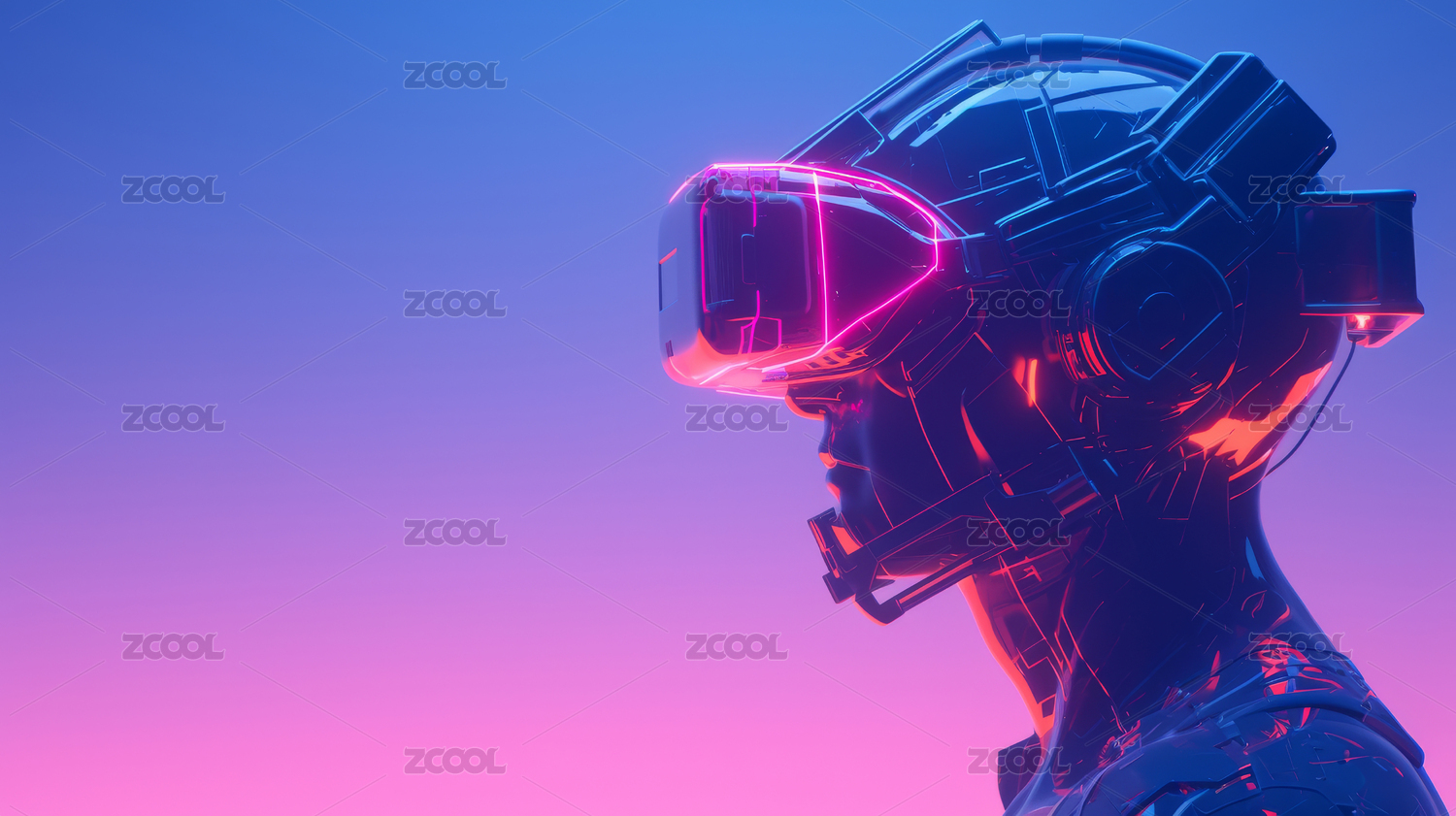 时尚,眼镜,耳机,未来,战士,科技,炫酷,霓虹,灯光,紫色