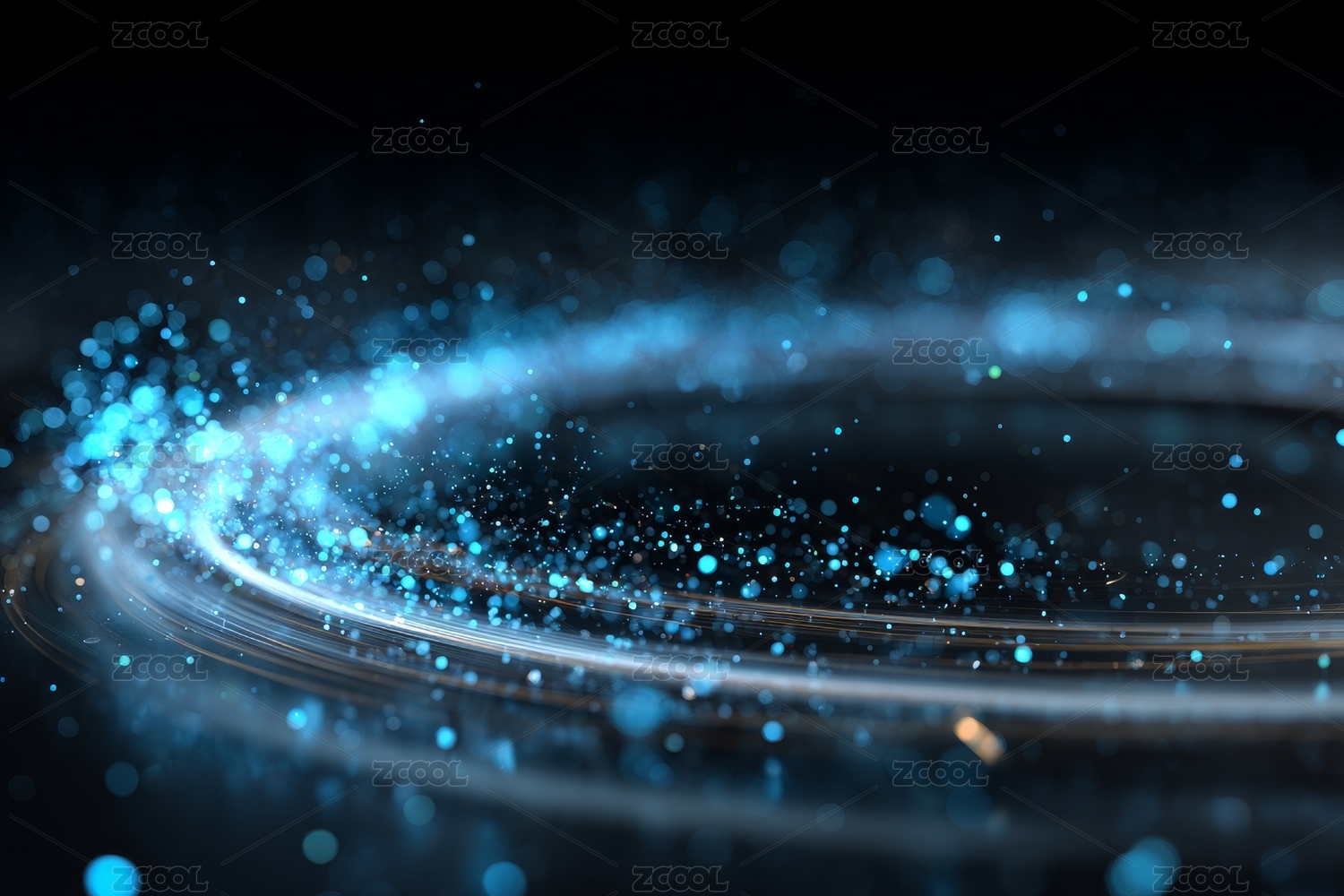 蓝色发光粒子构成的抽象圆环