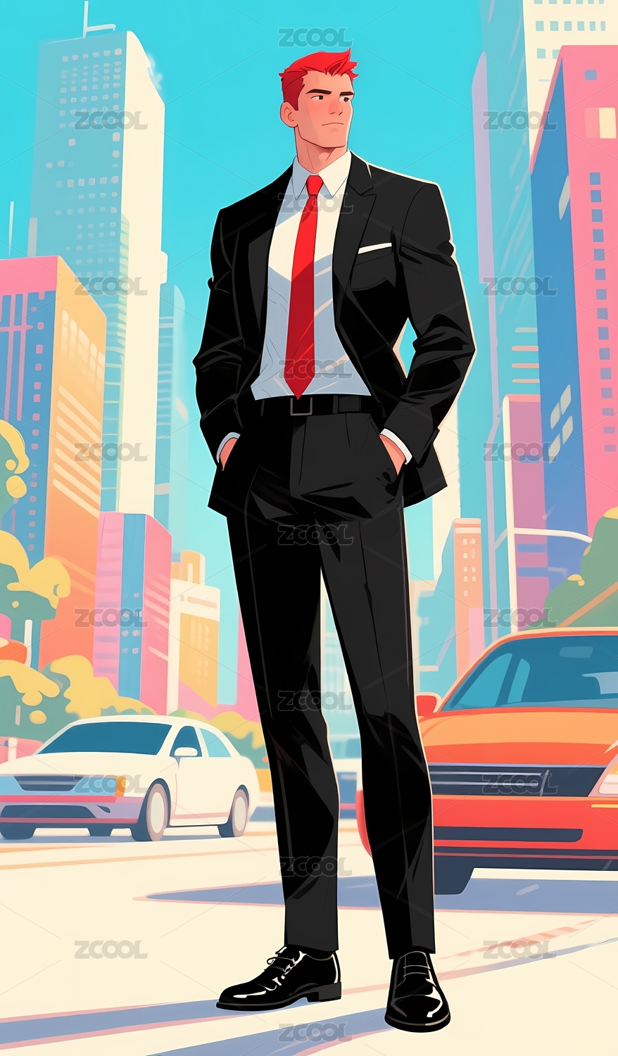 一位成功商业白领站在玻璃幕墙后边欣赏城市