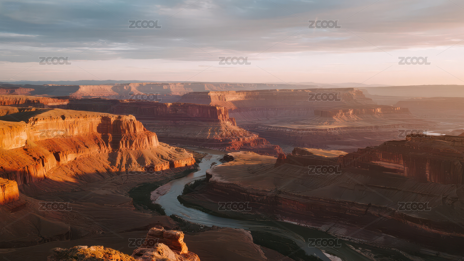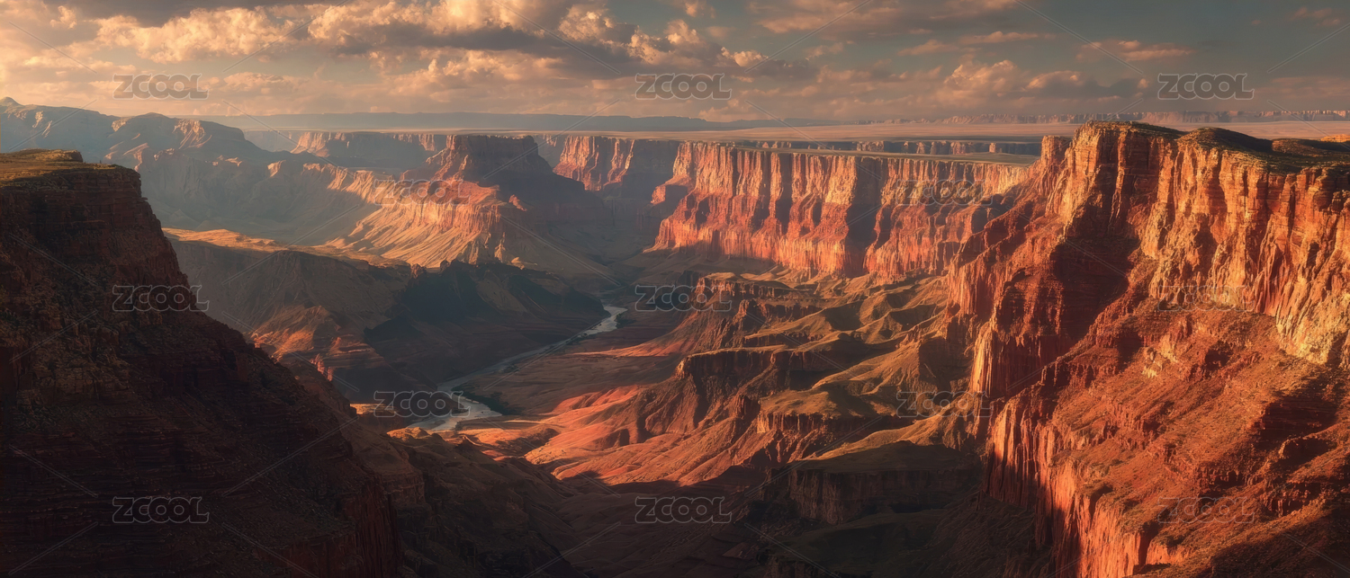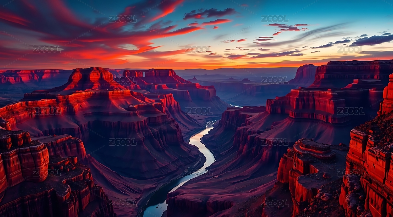 日落余晖下雄伟壮丽的峡谷河流风景