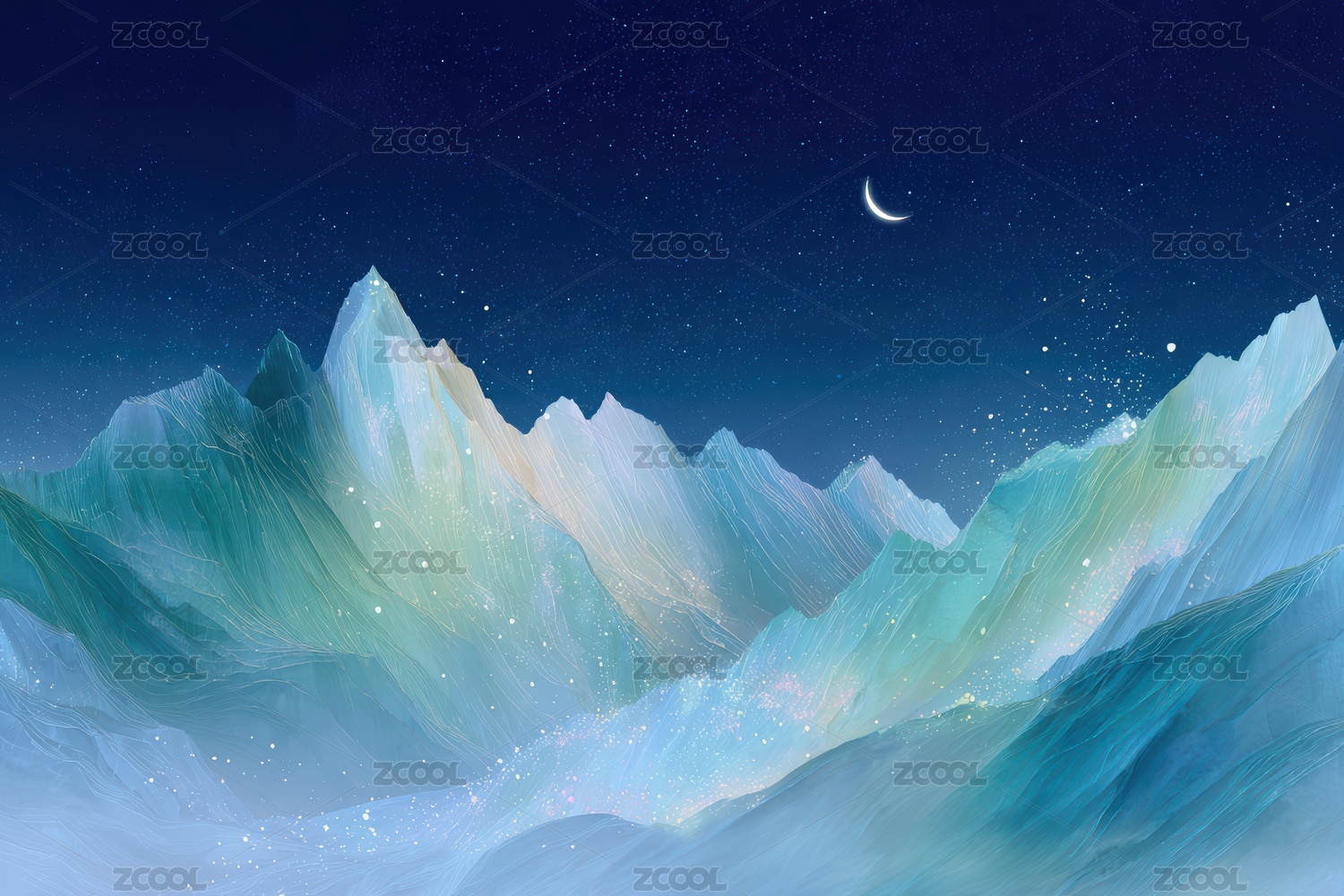 梦幻,自然,背景,质感,蓝色,线条,山峰,山峦,美景,星空