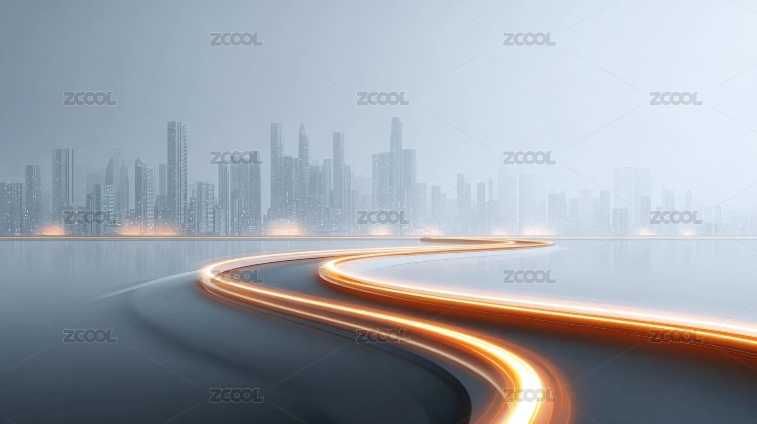 商务科技现代风格白色道路天际线背景