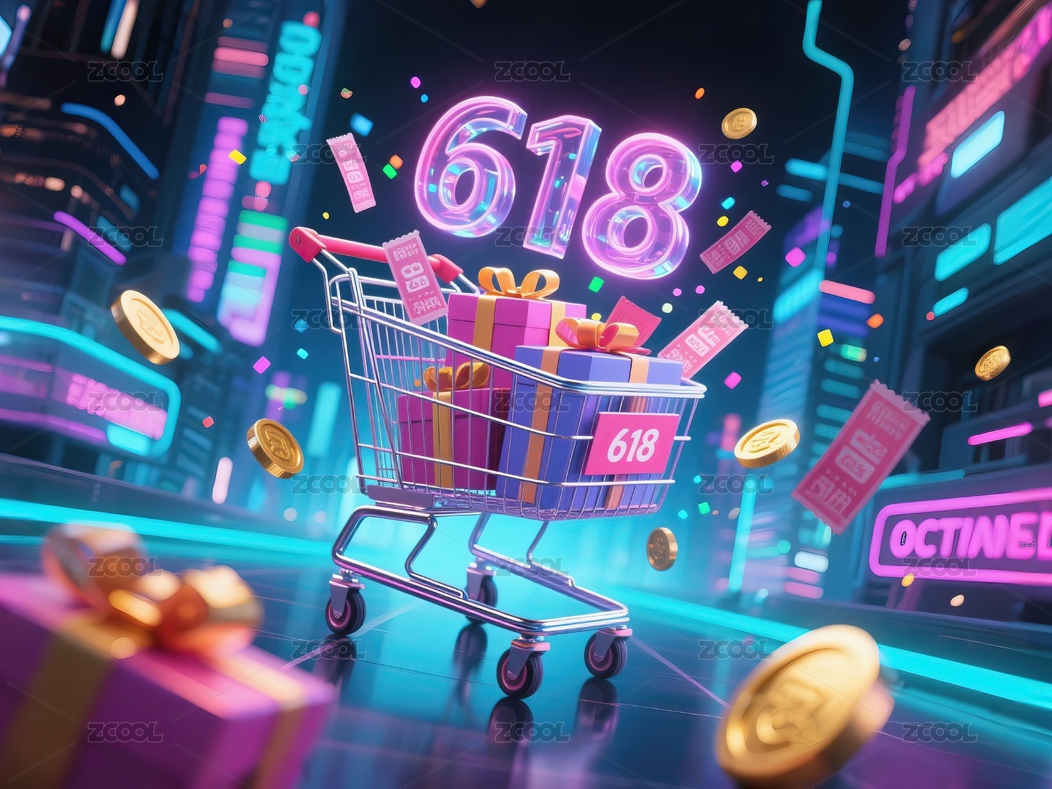 电商,促销,海报,购物车,618促销,礼盒,海报背景,城市,楼房,建筑