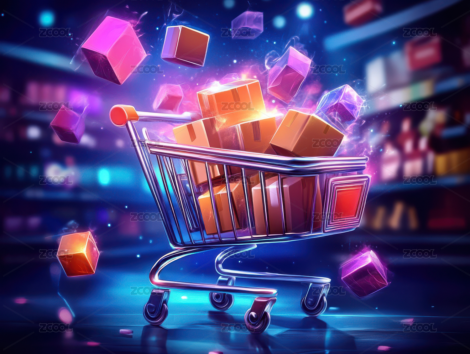 电商广告背景购物车
