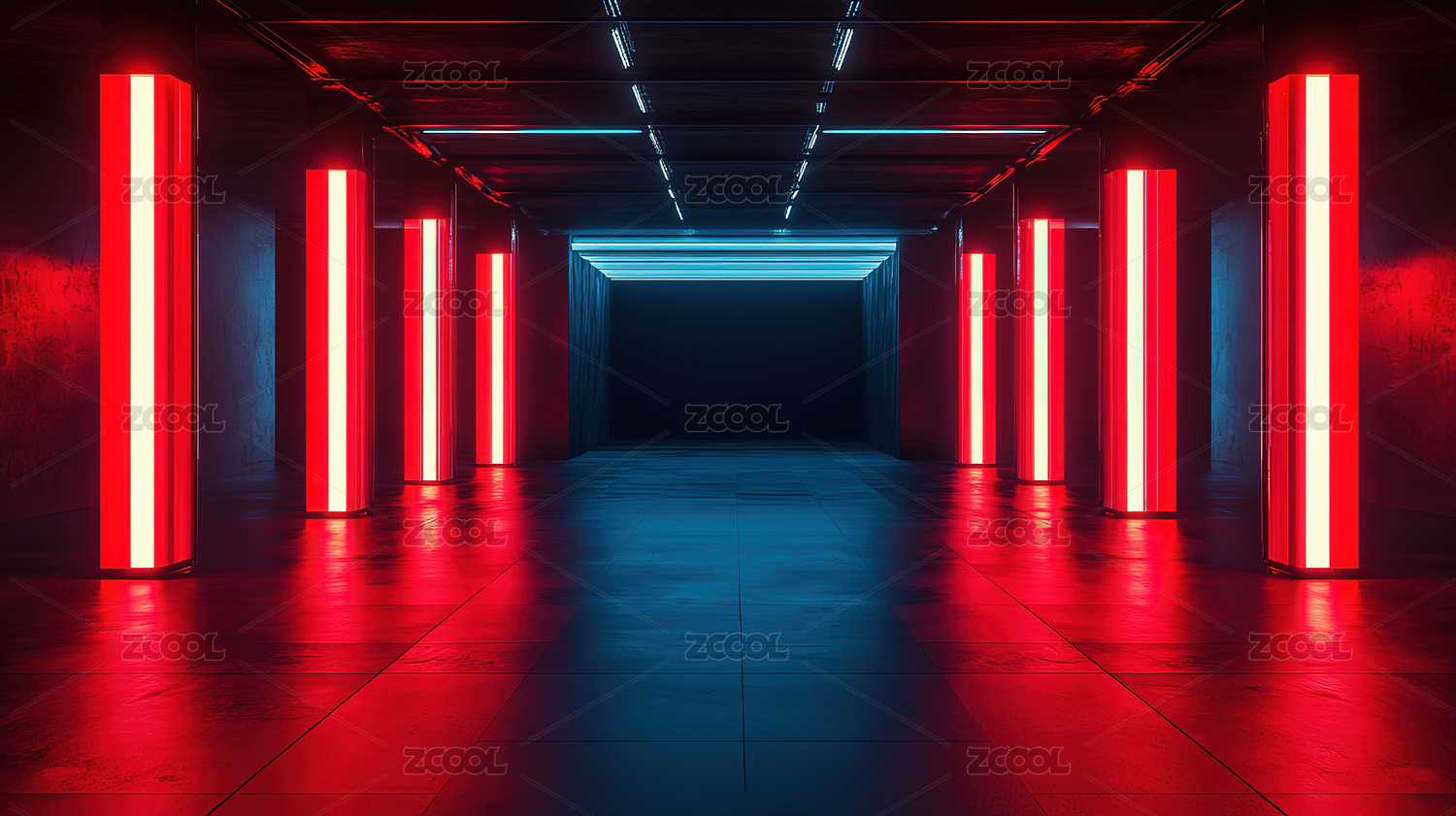 抽象科技感荧光色隧道走廊赛博朋克3D插画