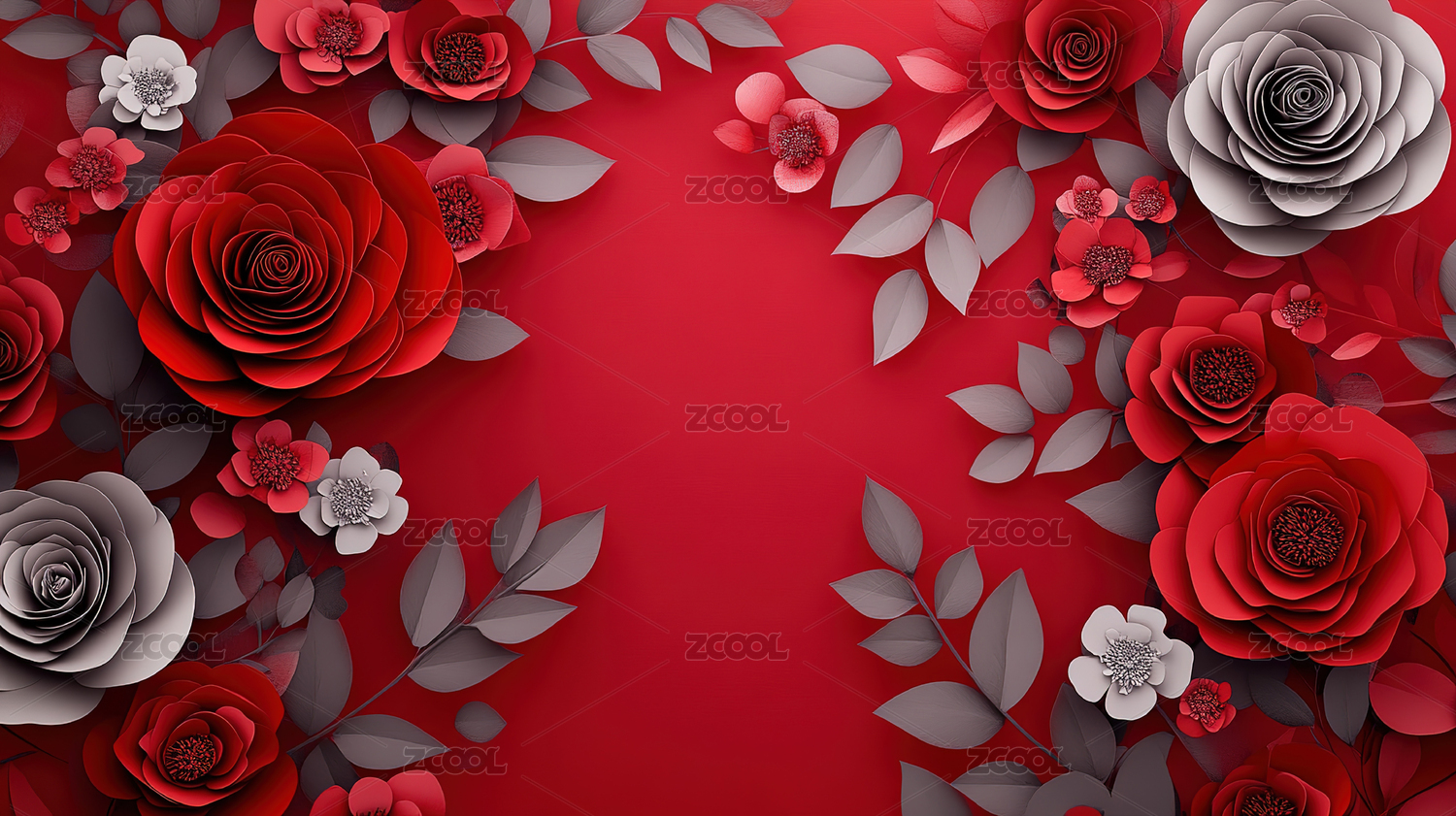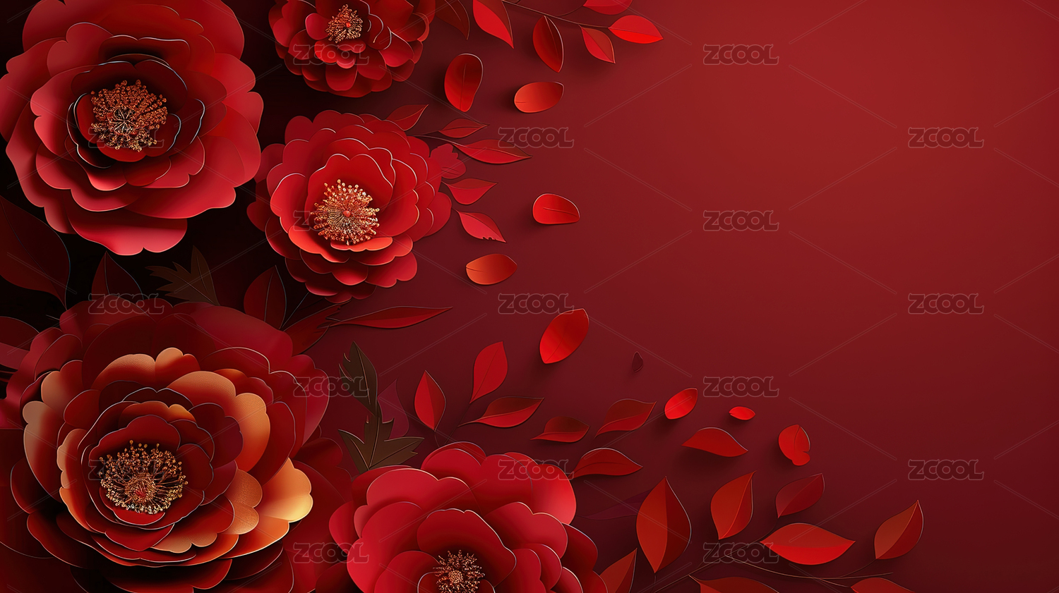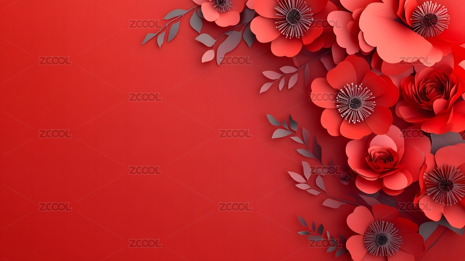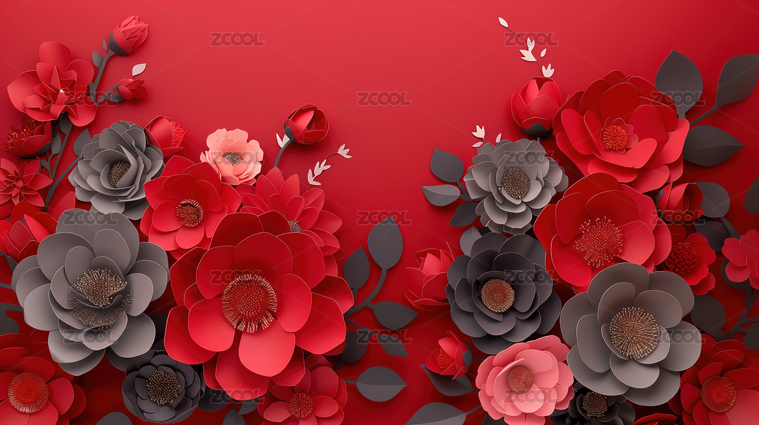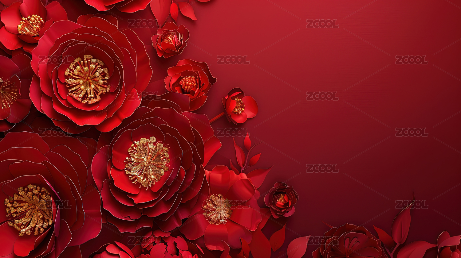 国潮中国红国风羊毛毡毛绒毛线环绕花朵背景