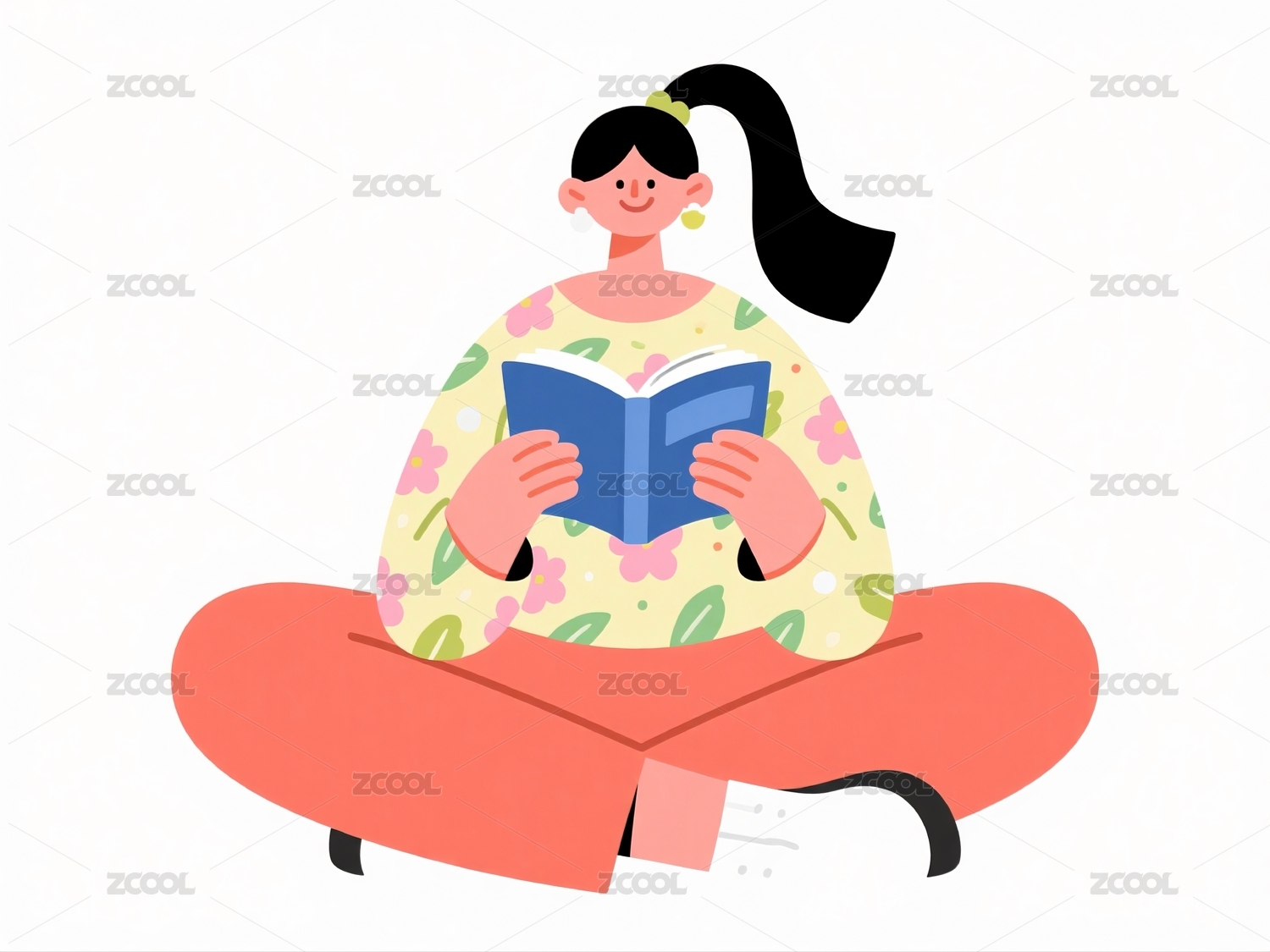 女孩阅读书籍坐在地面