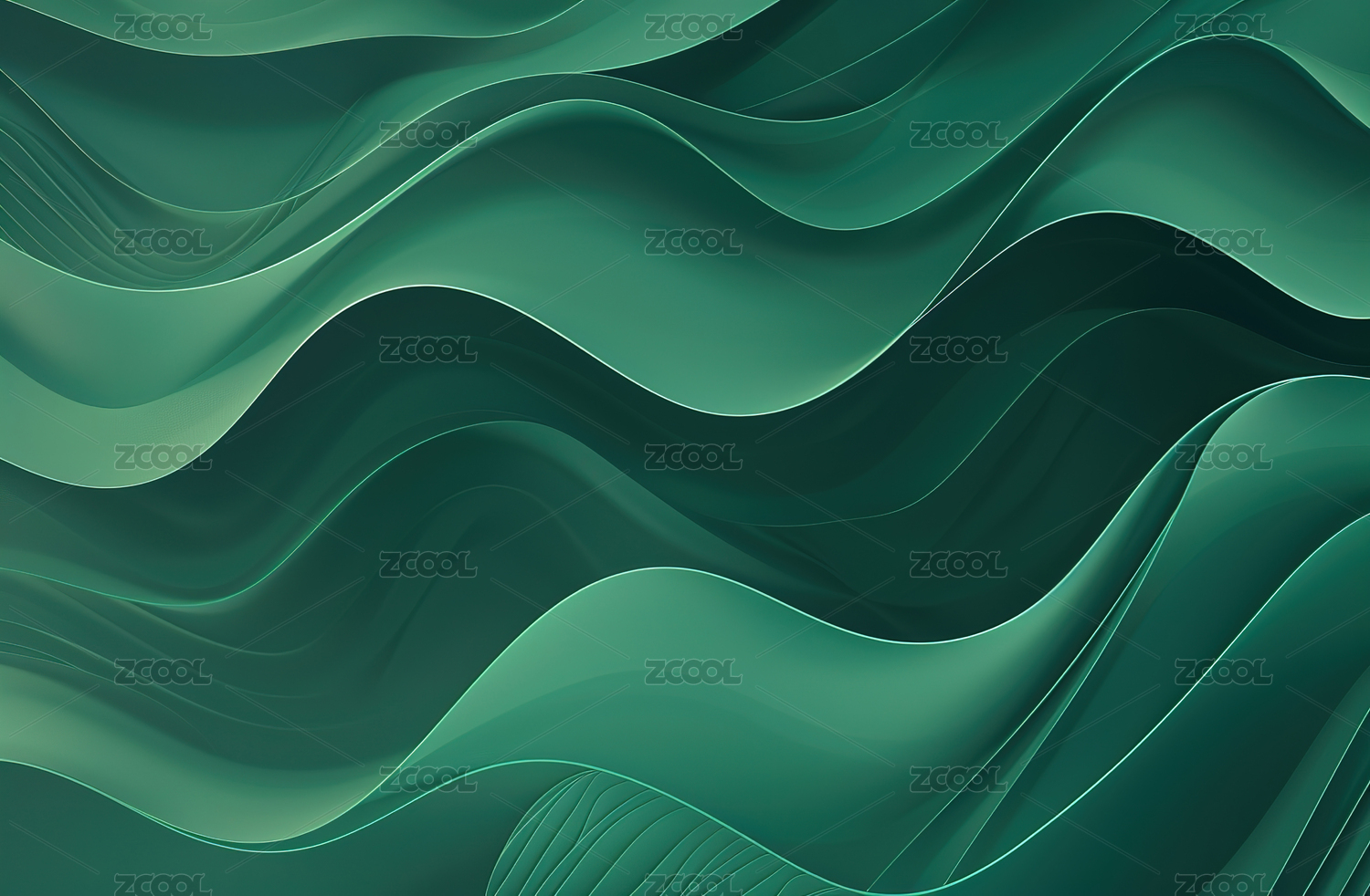 丝绸质感般绿色流畅曲线抽象背景