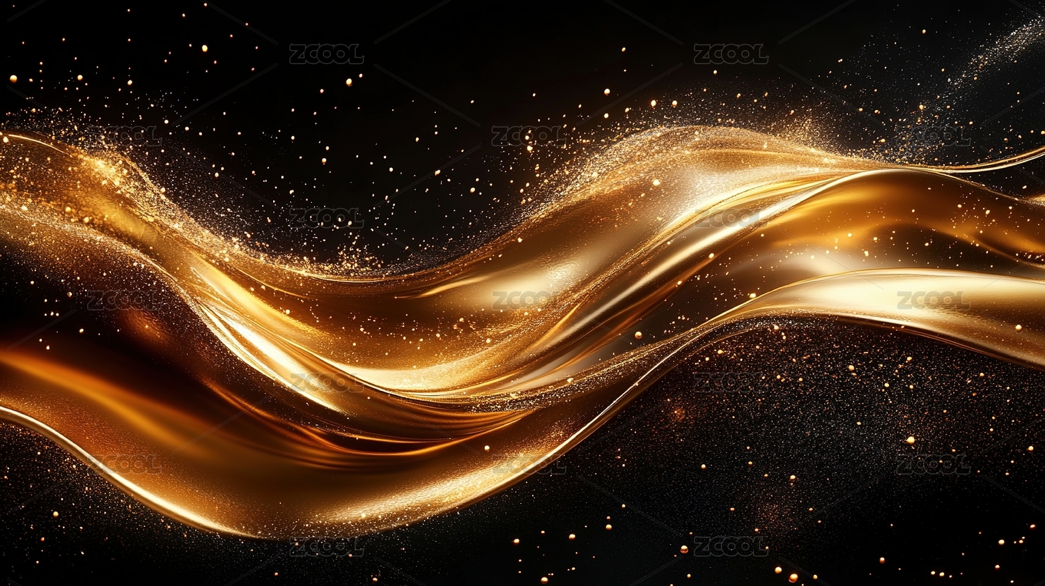 3D,金色,粒子,抽象,曲线,商务,年会,庆祝