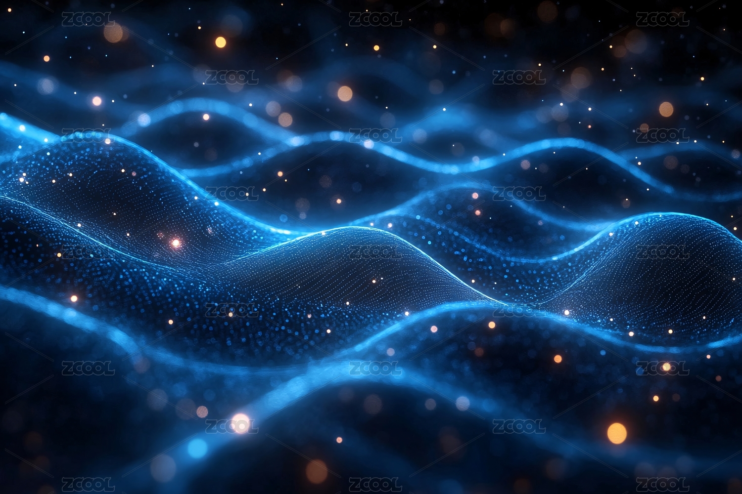 蓝色,波浪,发光粒子,背景,科技感,抽象,矢量,插画,动态,光影
