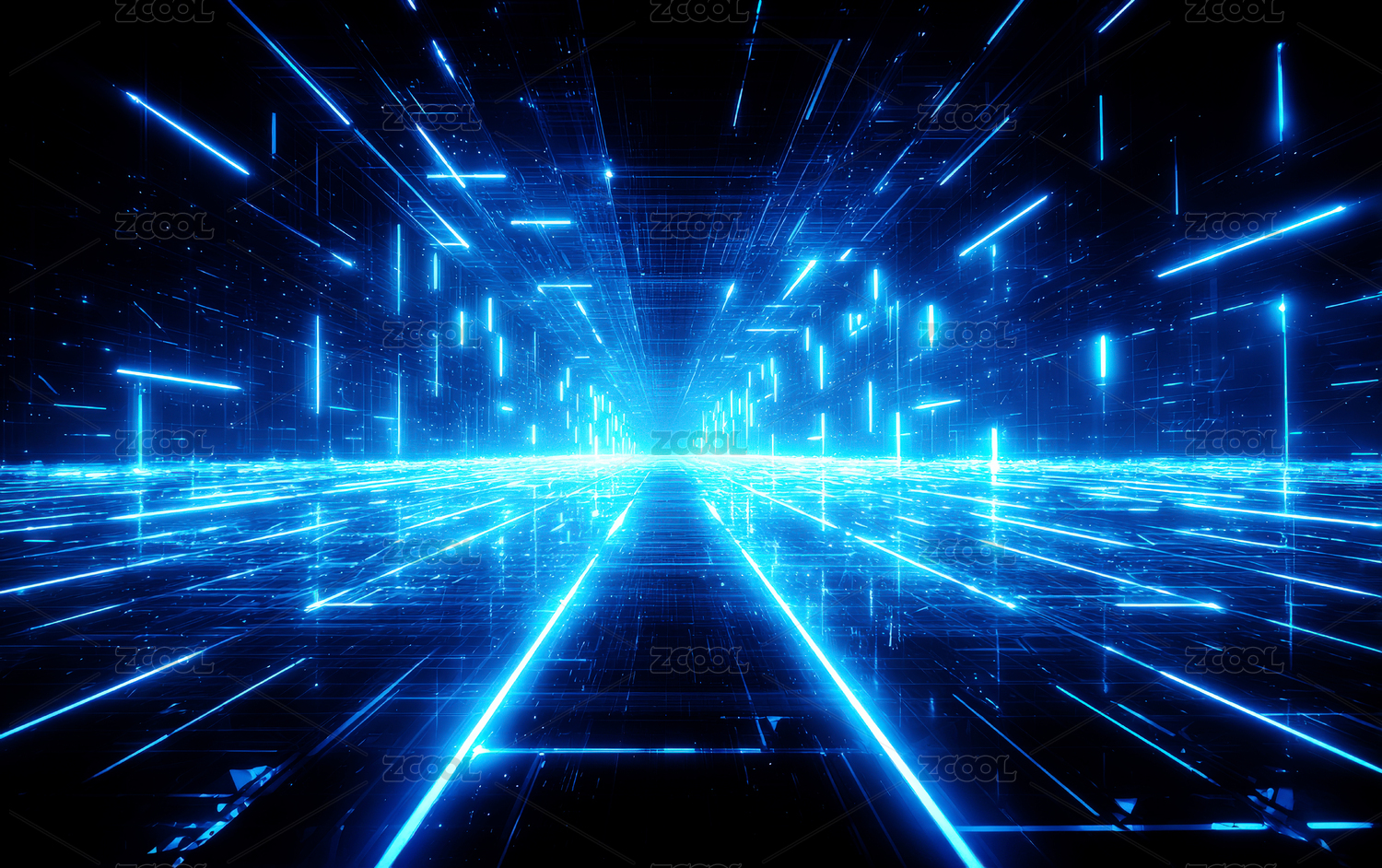 光影,通道,蓝色,科技感,场景,插画,矢量,未来感,线条,光束