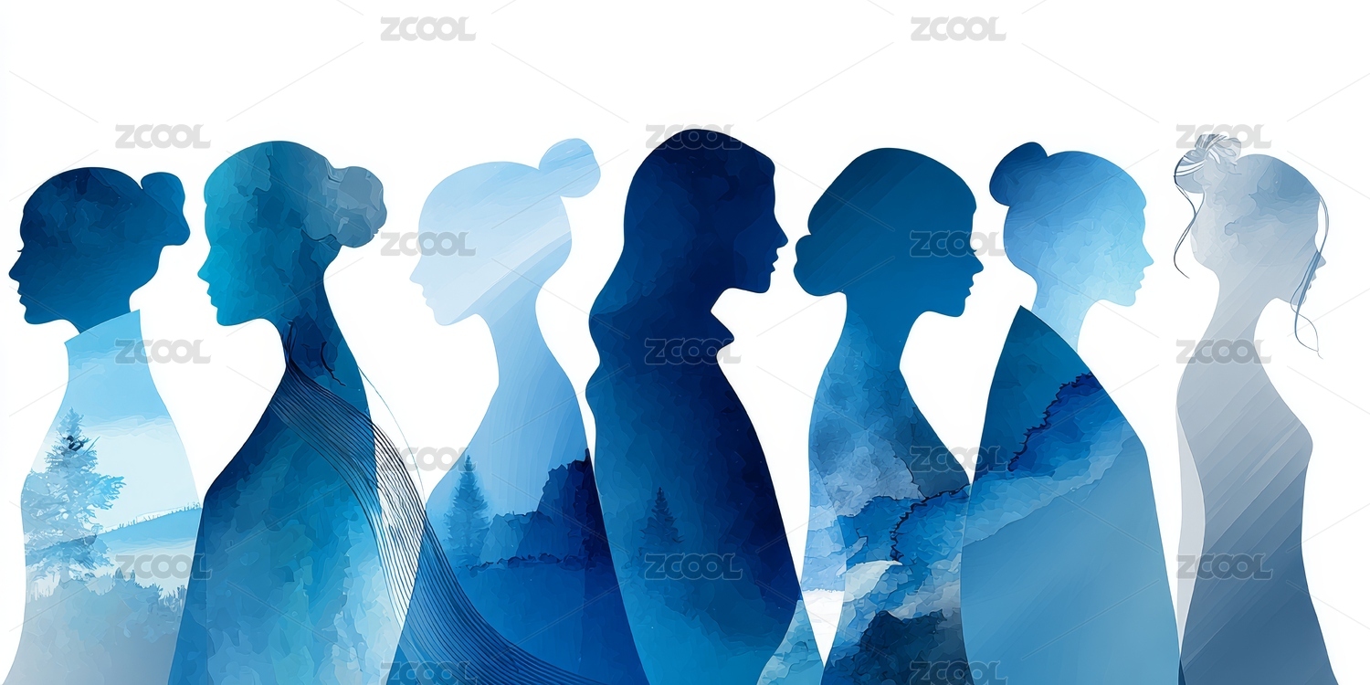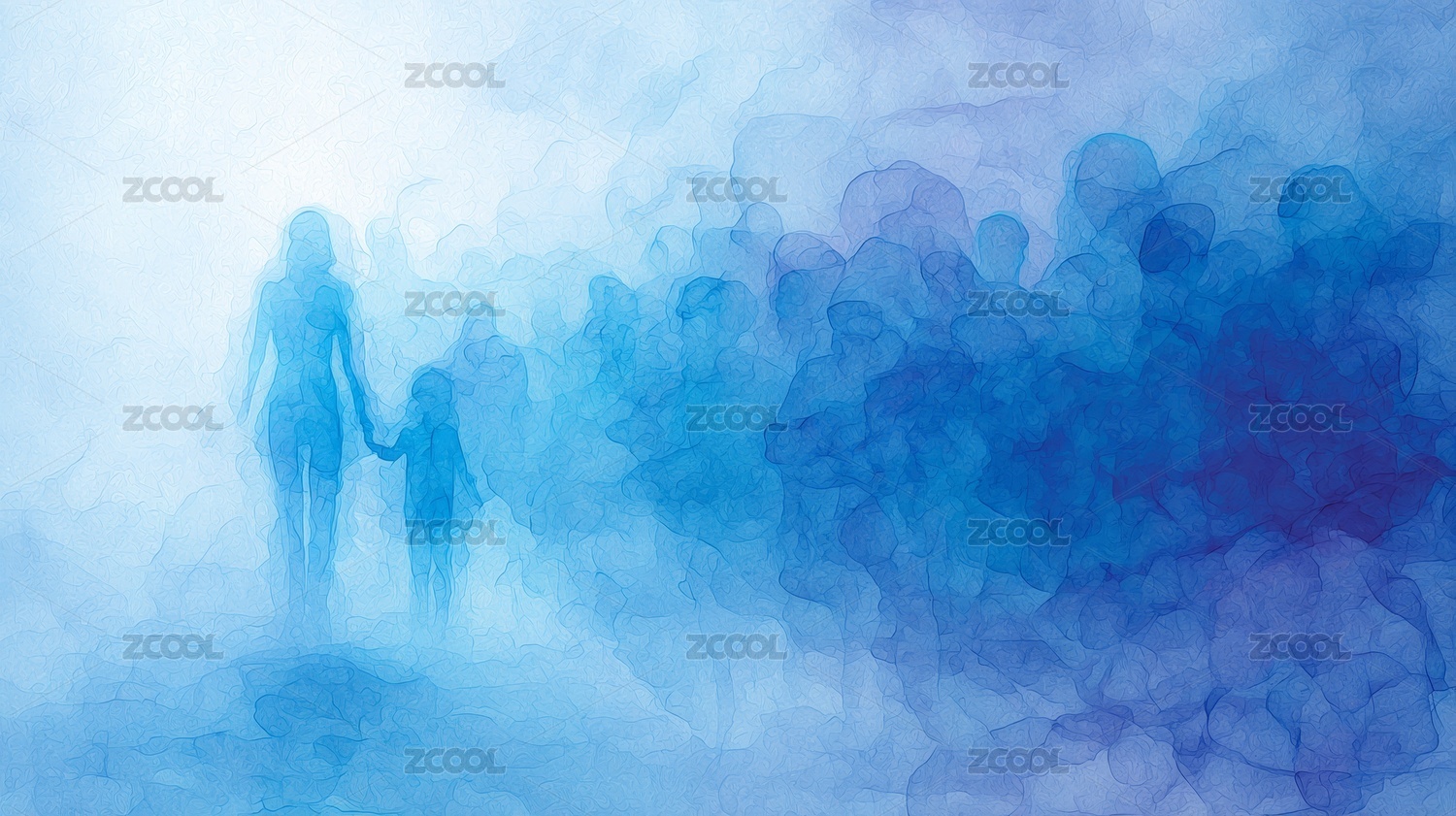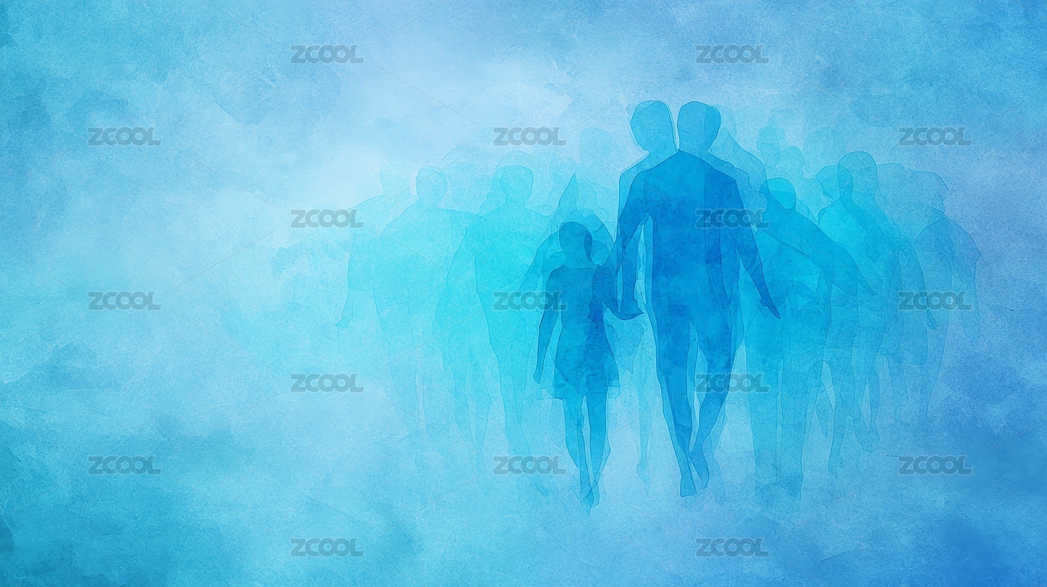 人物,剪影,蓝色,抽象,家庭,亲子,牵手,群像,艺术,背景