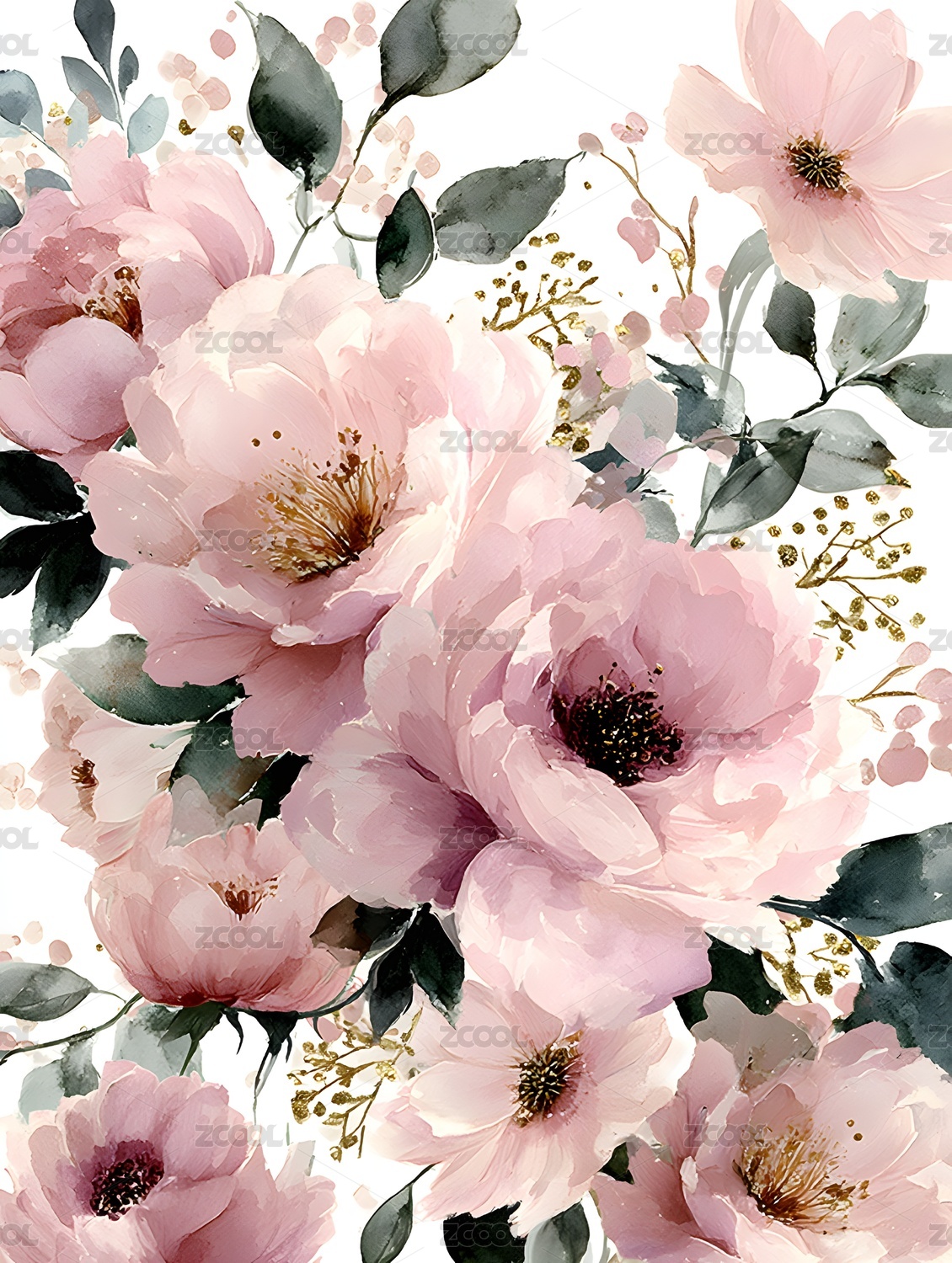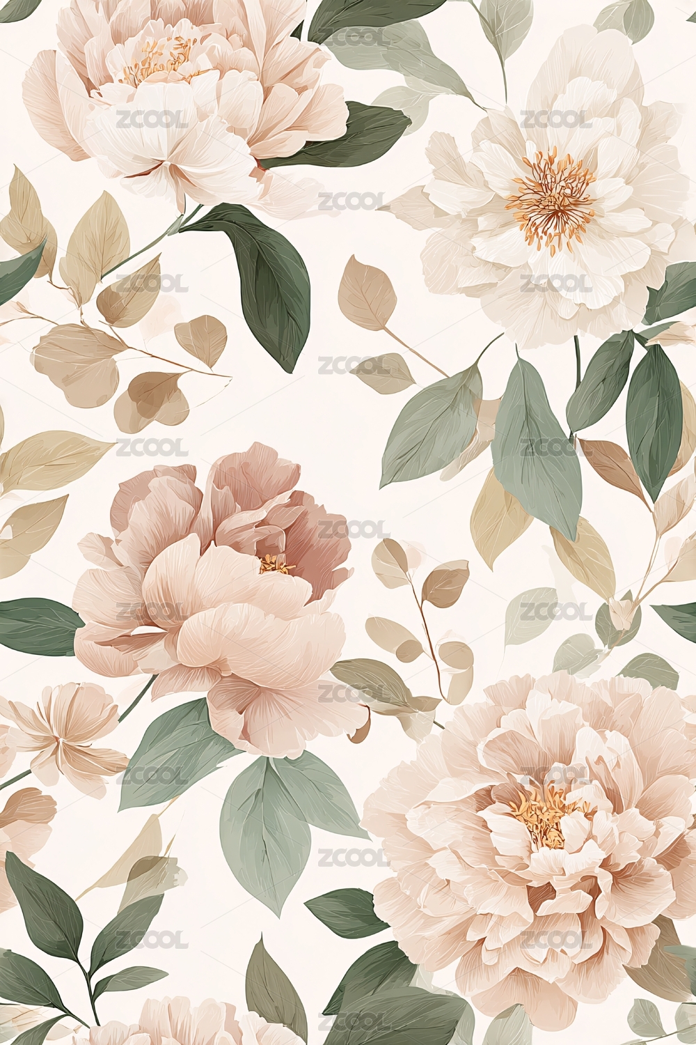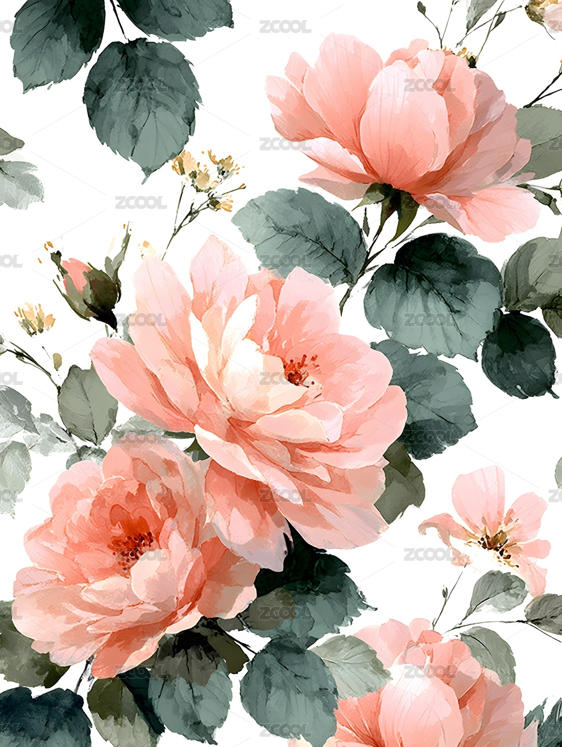 花卉,花朵,绿叶,插画,背景,图案,唯美,清新,淡雅,自然