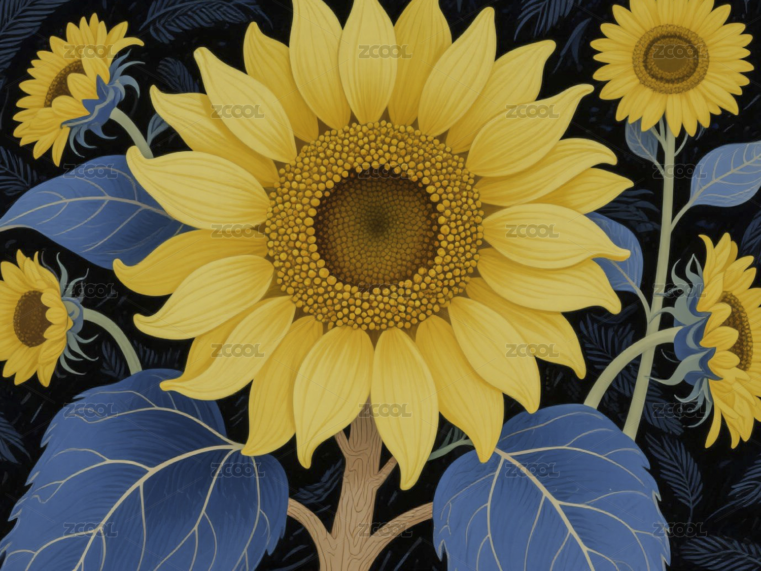 向日葵,花卉,叶子,插画,图案,装饰,植物,自然,元素,背景
