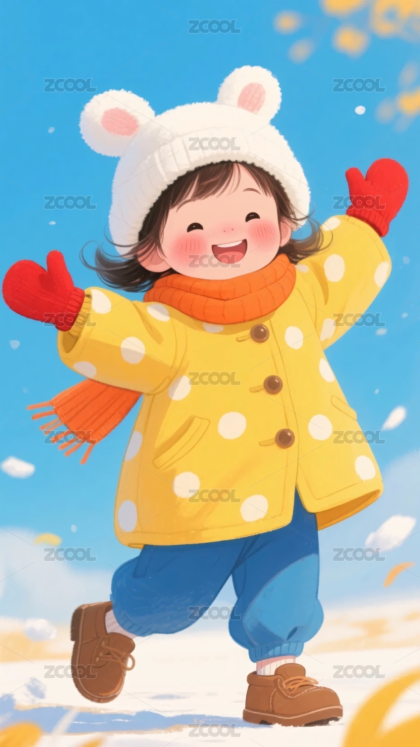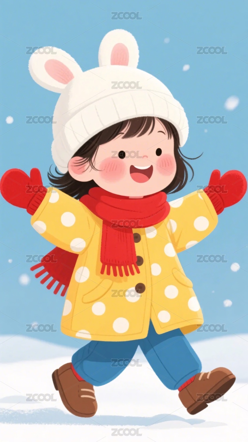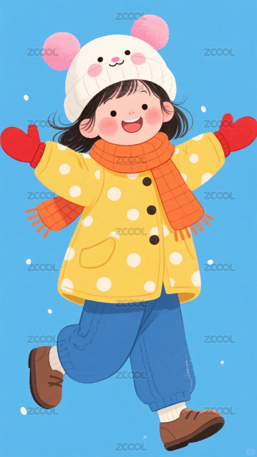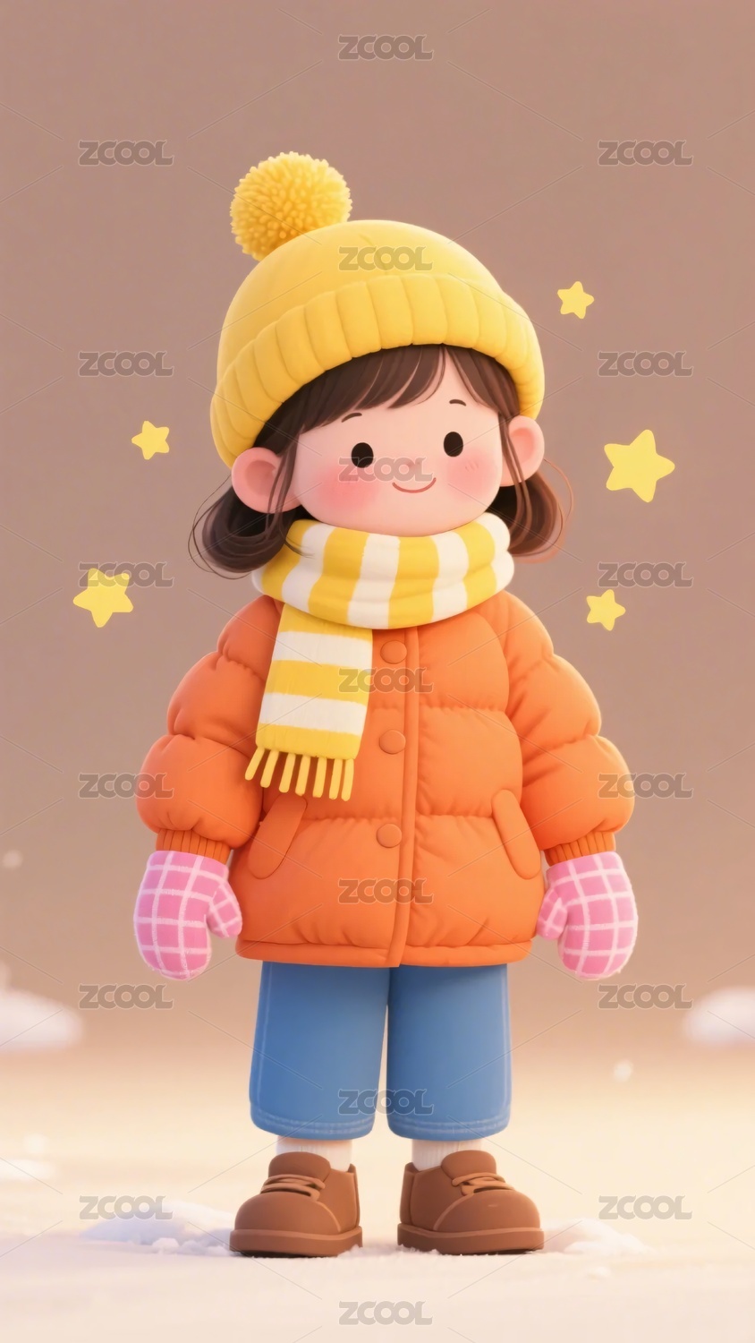 小女孩,雪景,帽子,围巾,棉衣,插画,卡通,冬季,童趣,星星