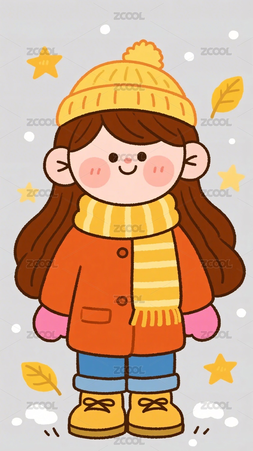 戴帽围围巾的可爱女孩插画
