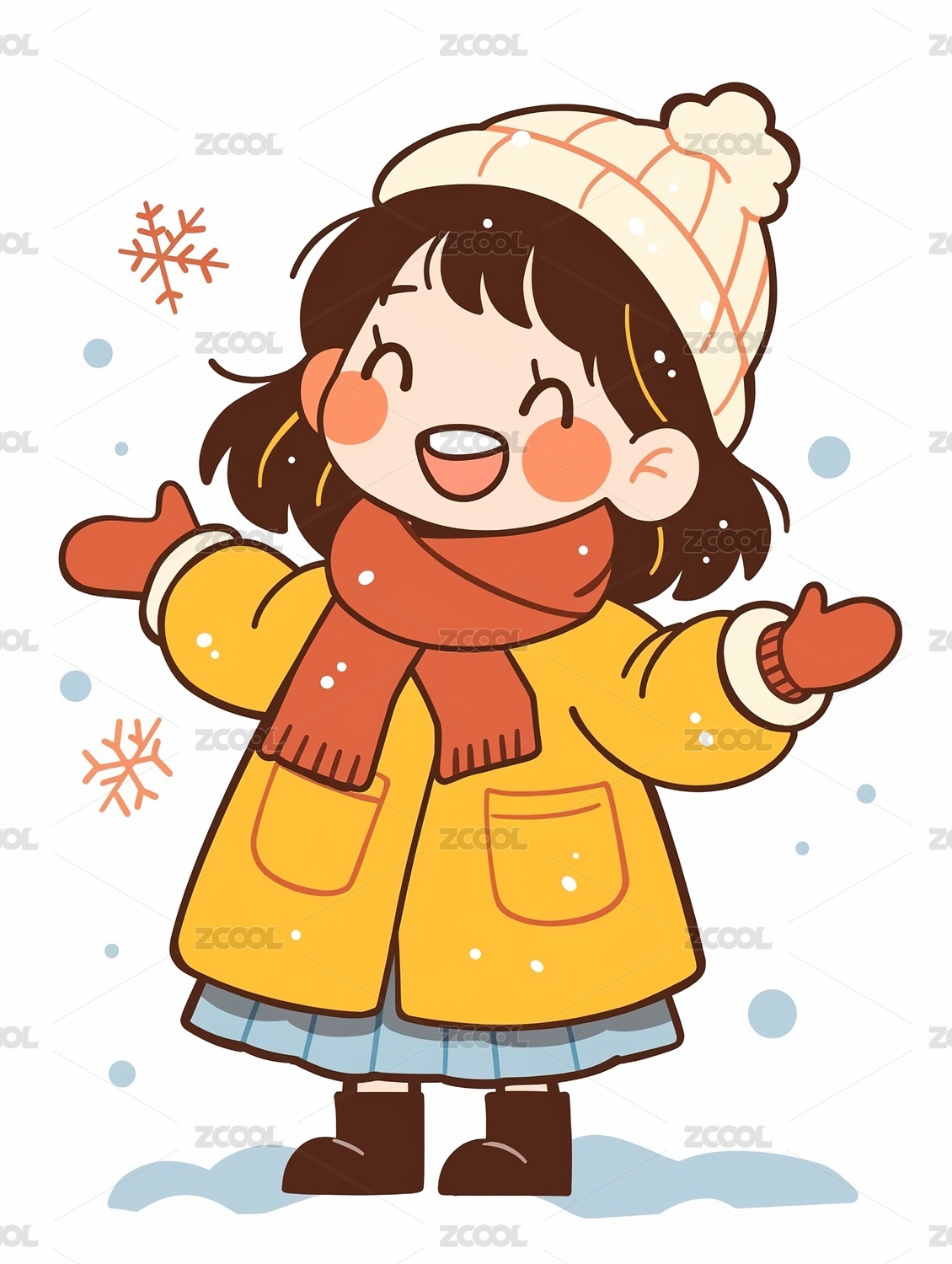 小女孩,帽子,围巾,冬装,插画,矢量,卡通,服饰,雪景,星星