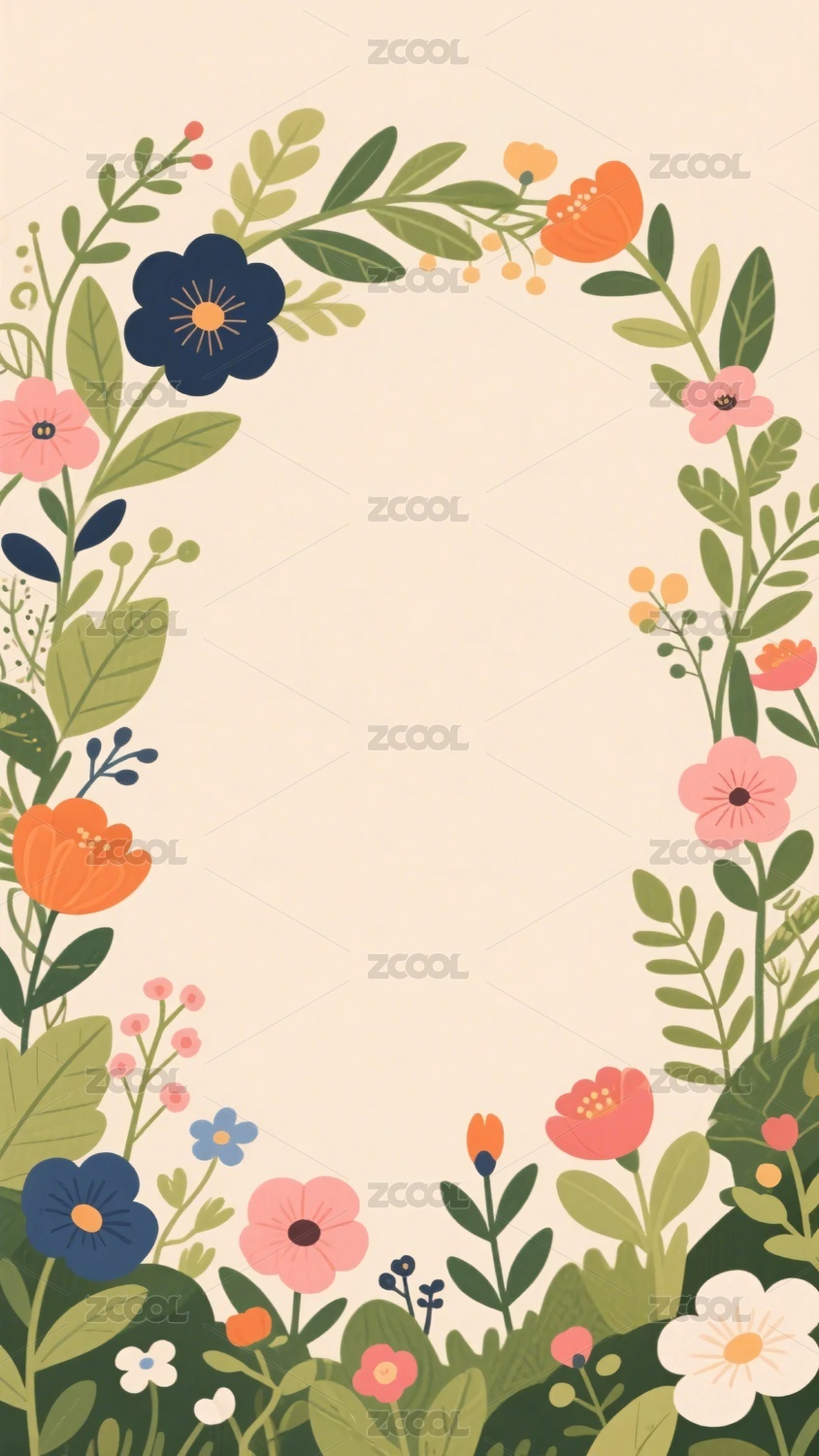 花卉环绕的简约插画边框