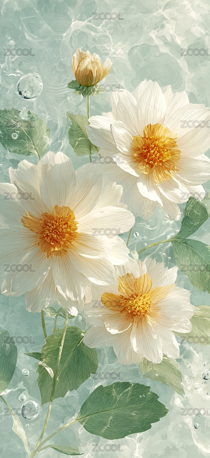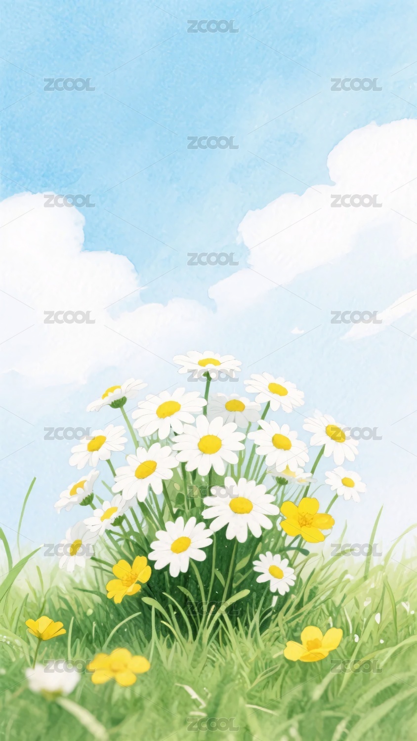 花卉,叶子,插画,背景,模板,清新,淡雅,黄色,白色,绿色