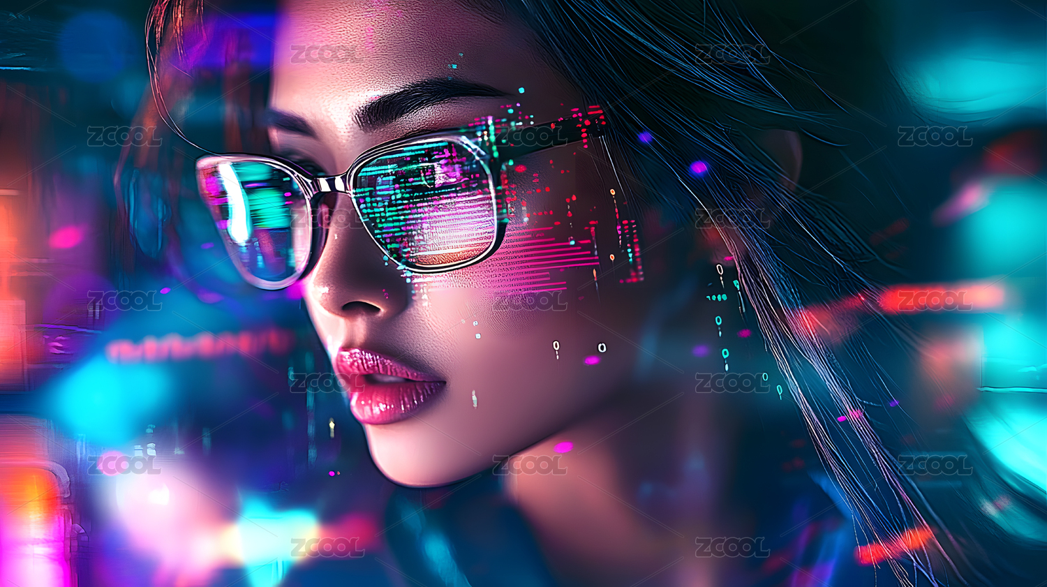 女性,眼镜,光影,时尚,潮流,人物,写实,插画,虚拟人物,色彩