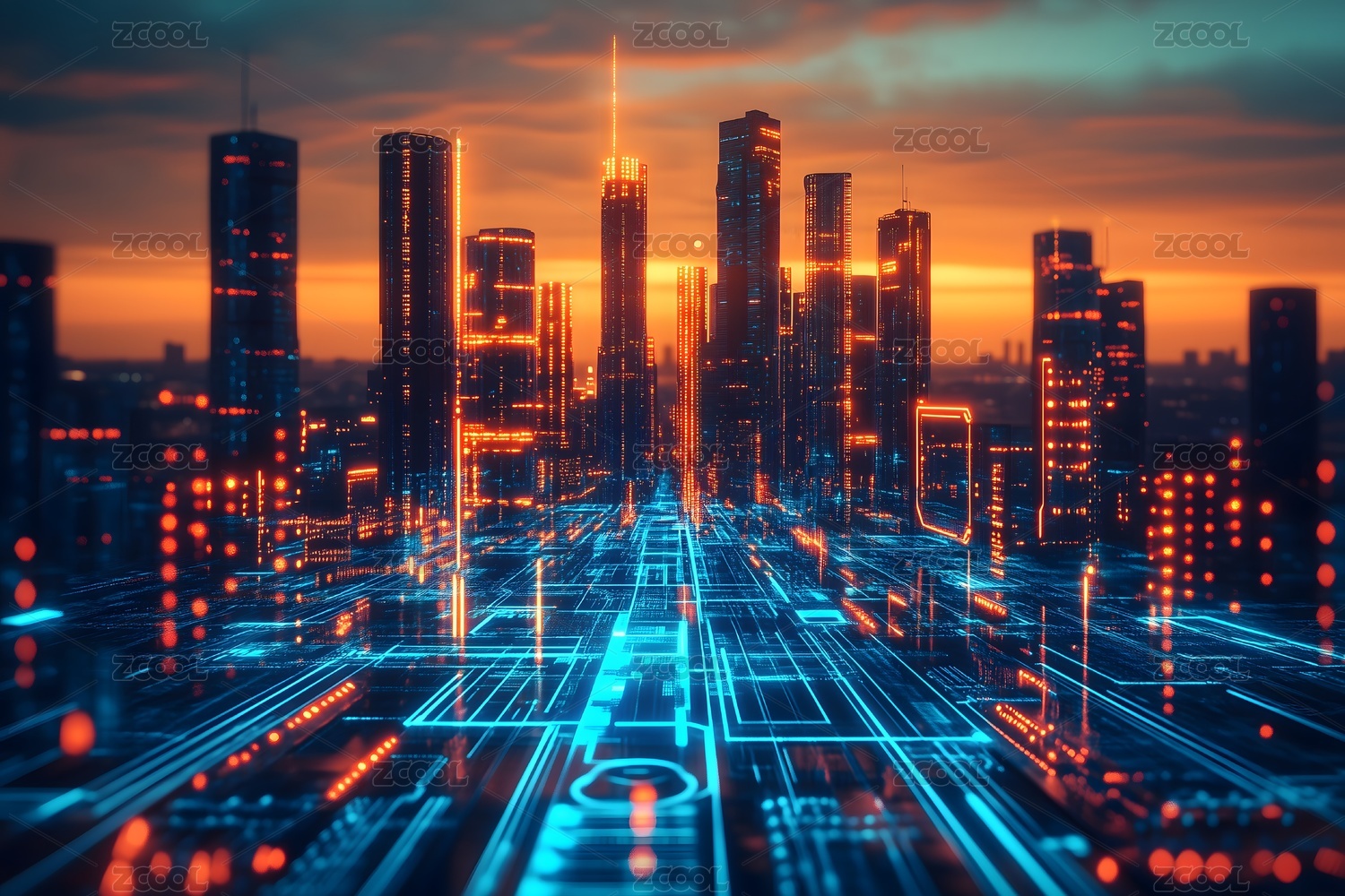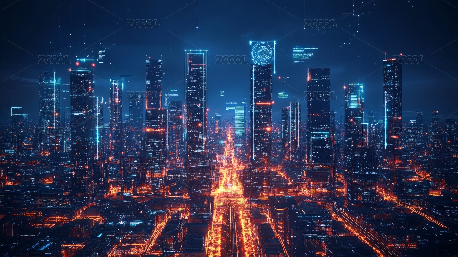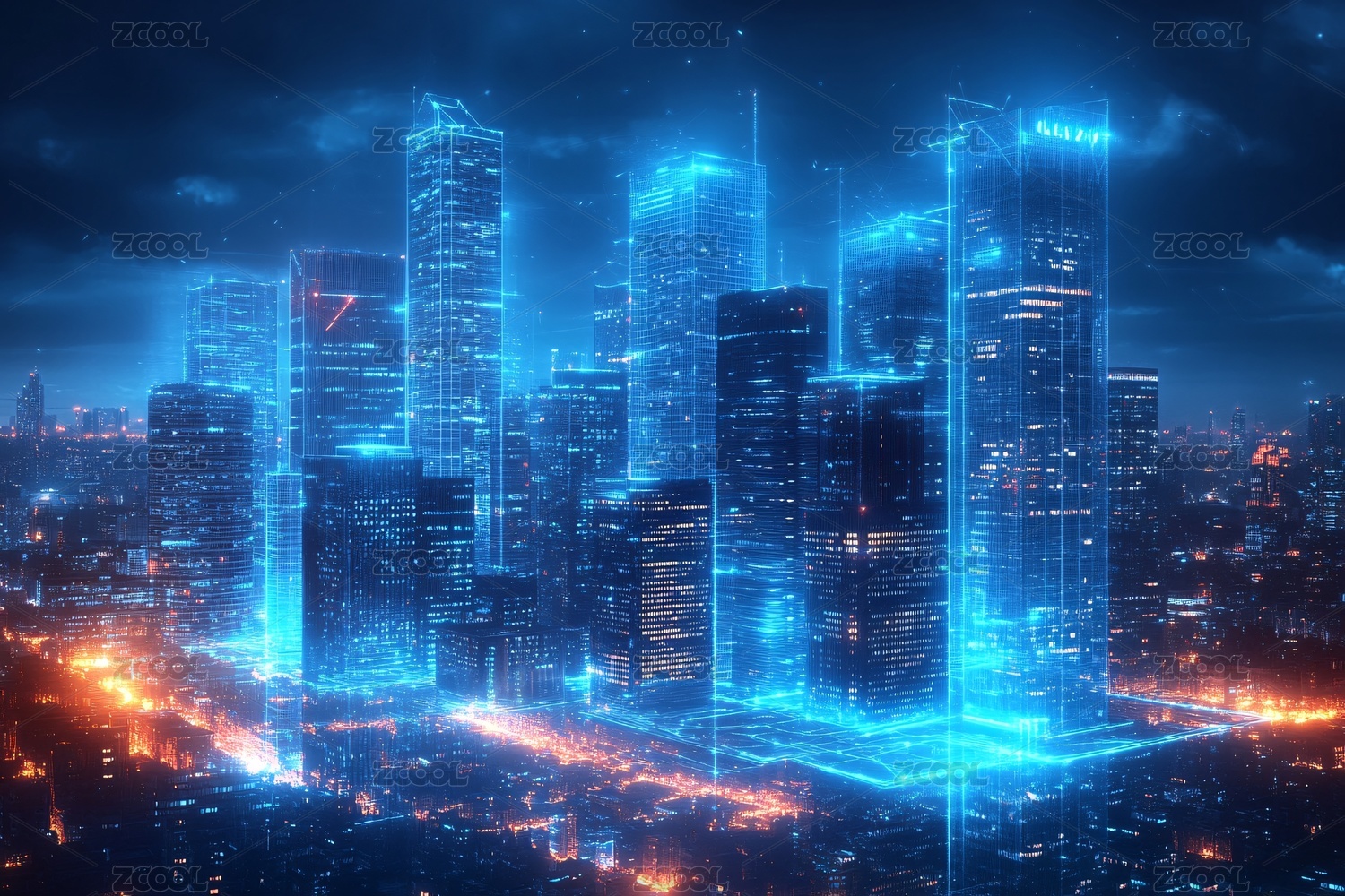 城市,夜景,科技感,线条,建筑,灯光,插画