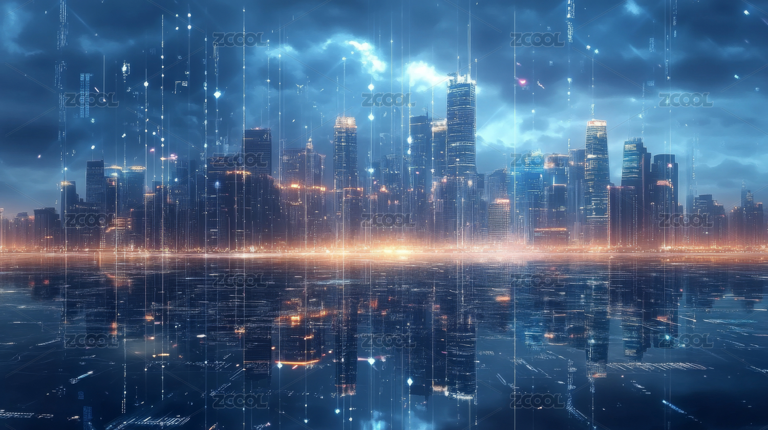 数字科技感城市夜景背景图