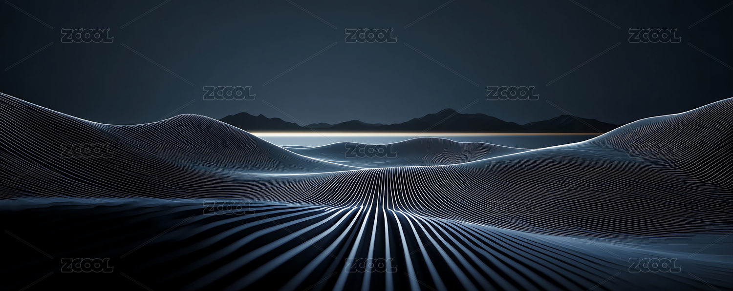 蓝色抽象线条构成波浪起伏形态
