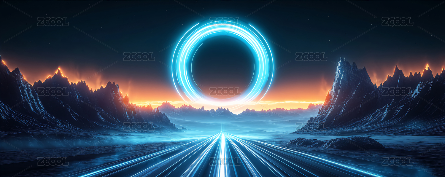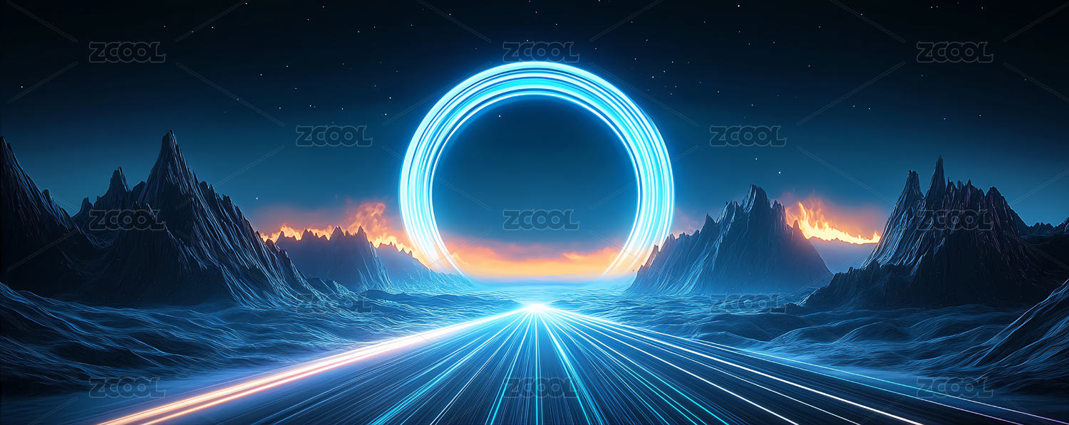 商务科技风梦幻超现实雪山光影道路