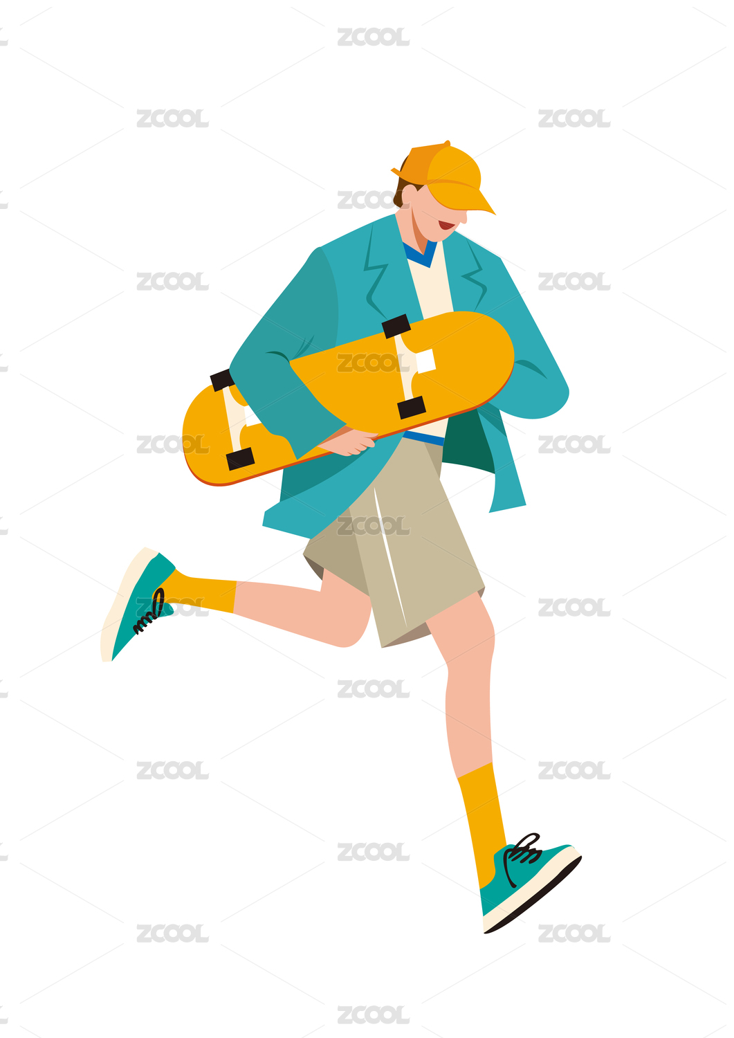 街头潮流年轻人拿着滑板奔跑