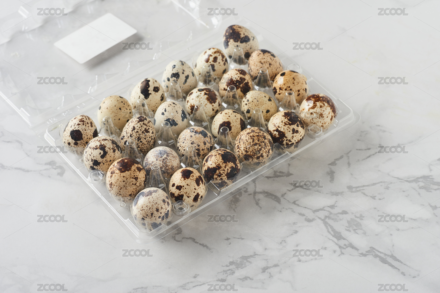 一个透明塑料盒装新鲜鹌鹑蛋