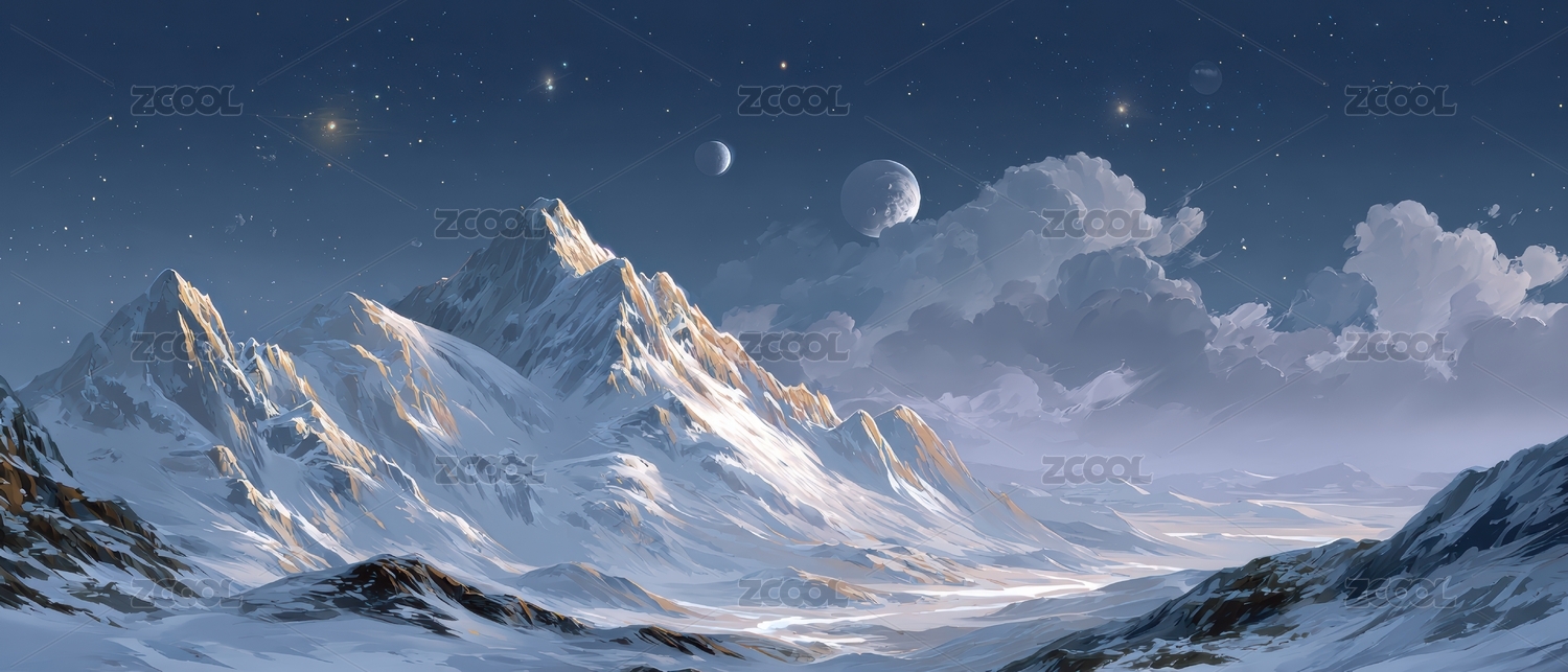 自然,梦幻,静谧,艺术,景观,云雾,雪山,金光,夜空,星辉