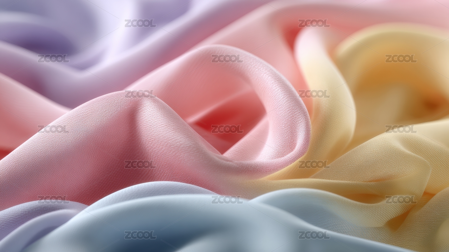柔和色彩的丝绸布料特写