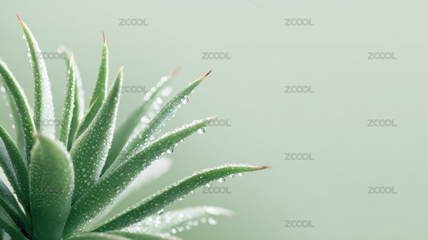 绿色芦荟与水珠