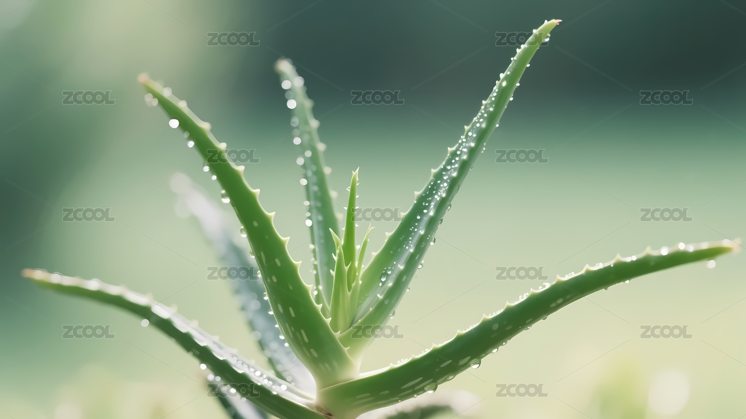露珠点点芦荟叶