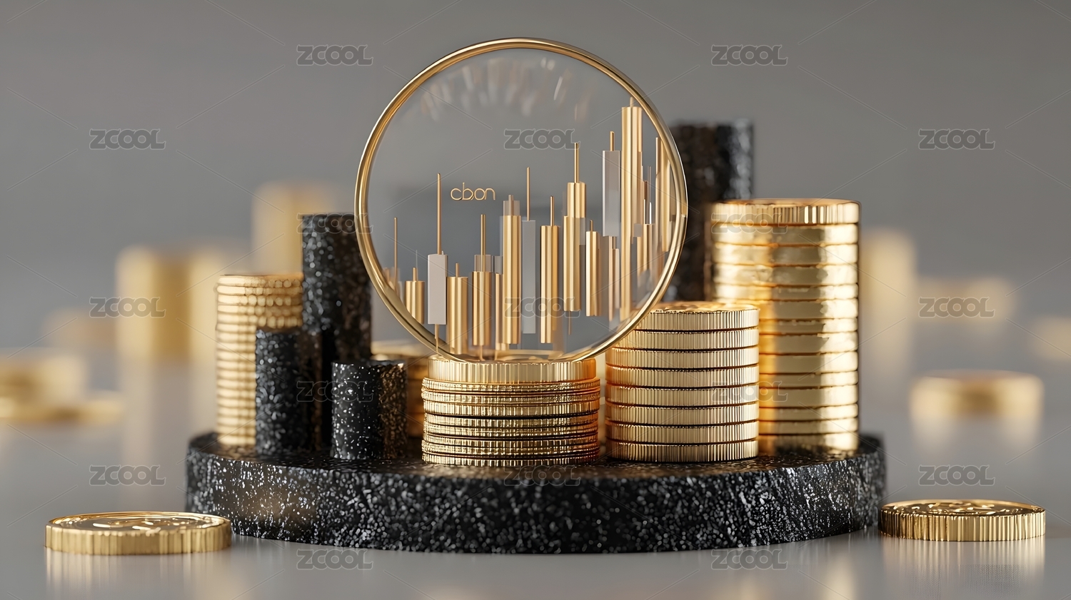 金币之上的柱状图呈现增长趋势