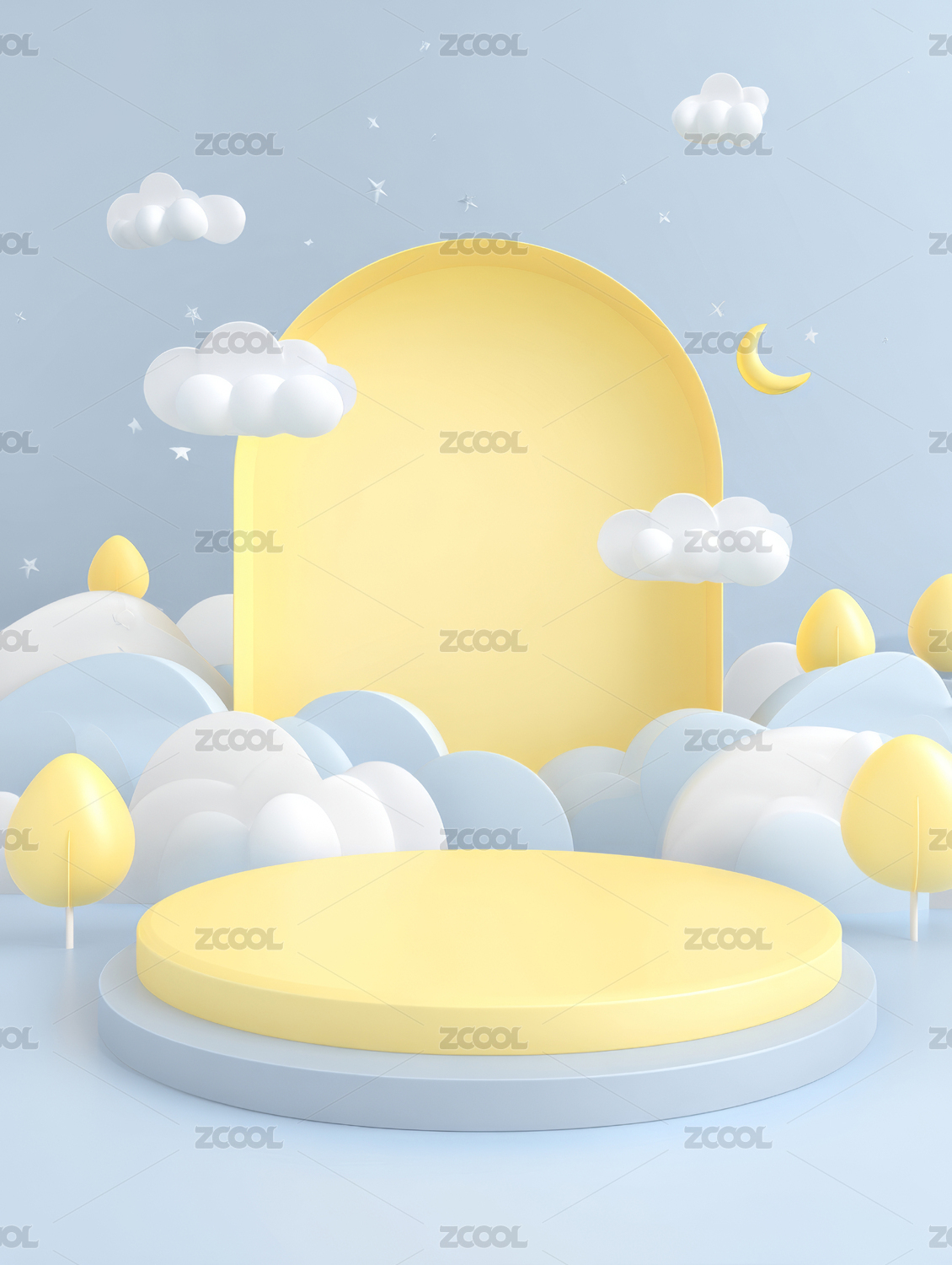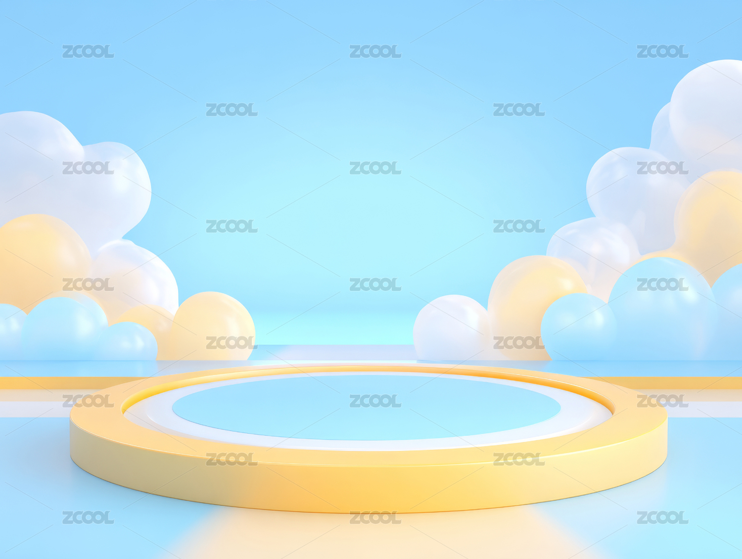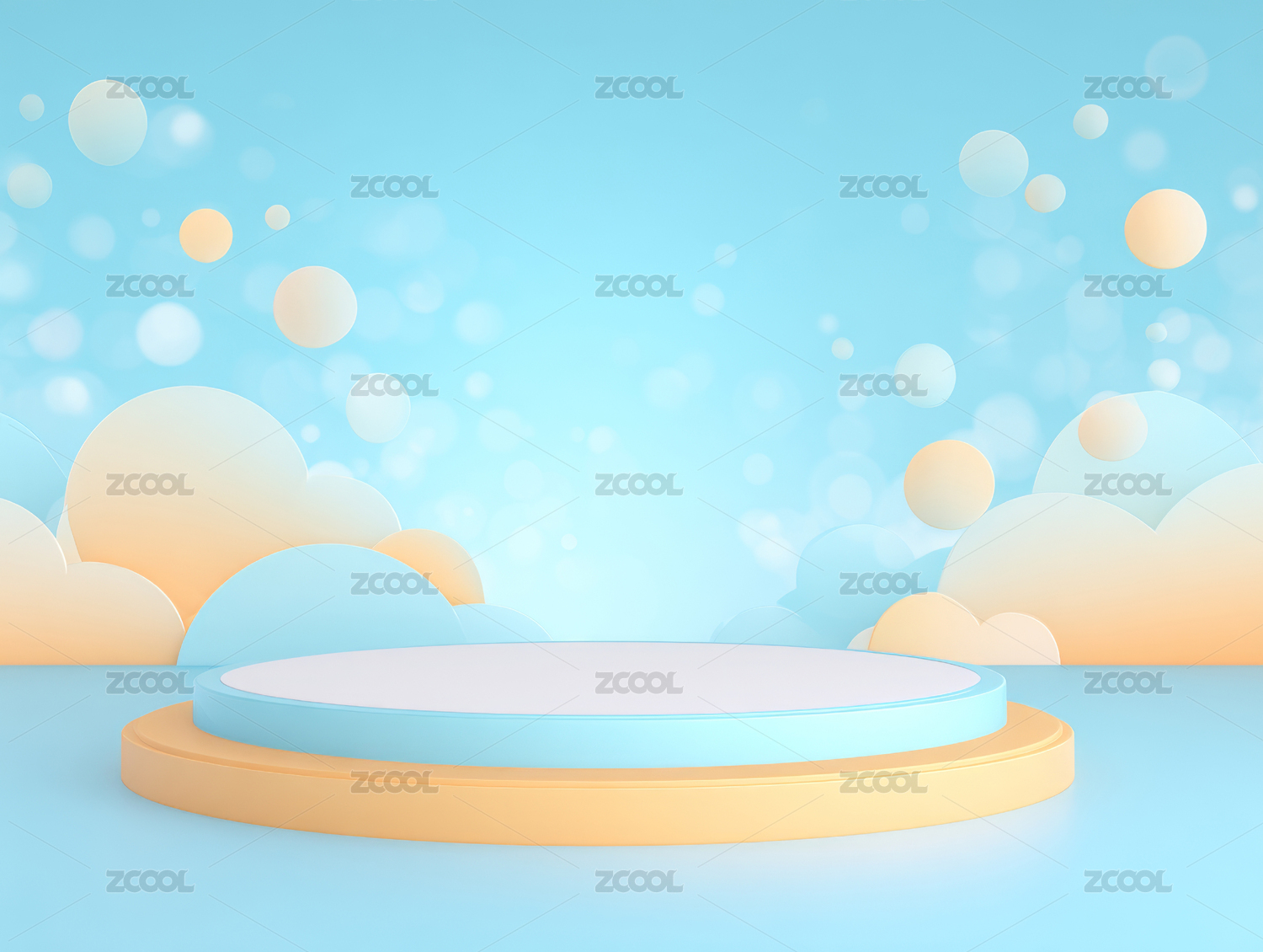 云朵,展示台,蓝色,橙色,圆形,背景,简洁,天空,气泡