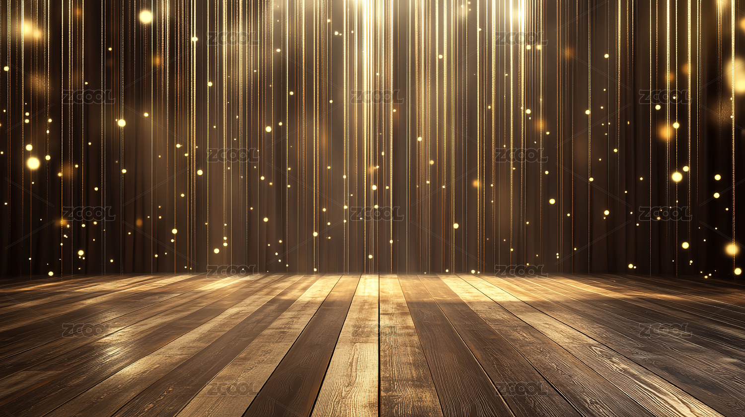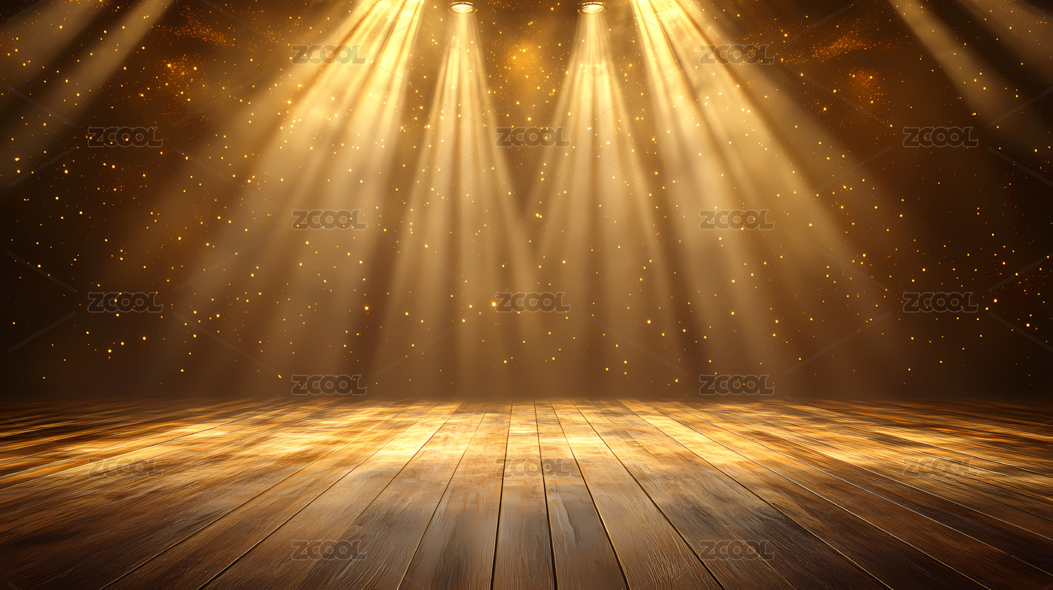 舞台木地板与金色光芒