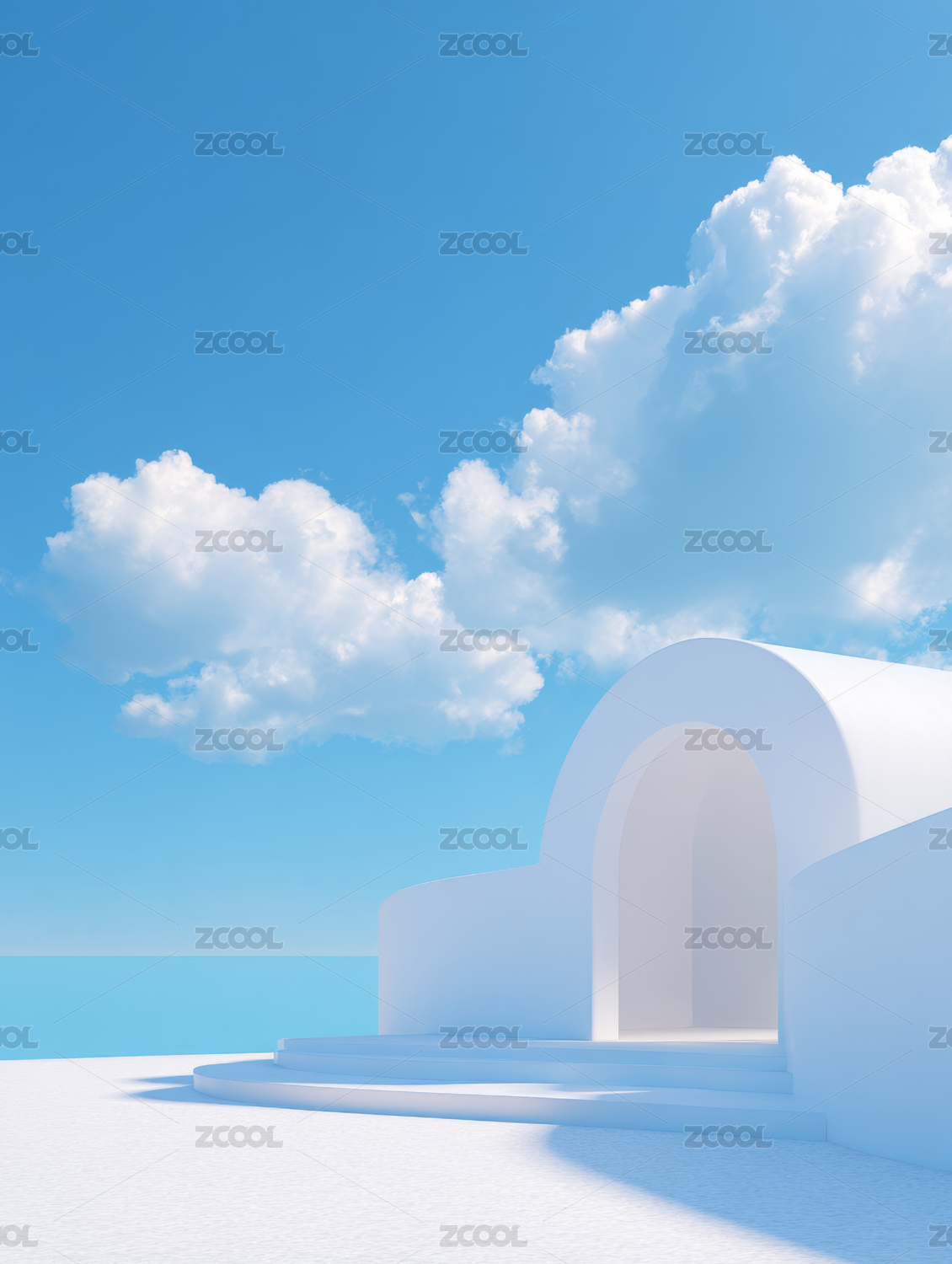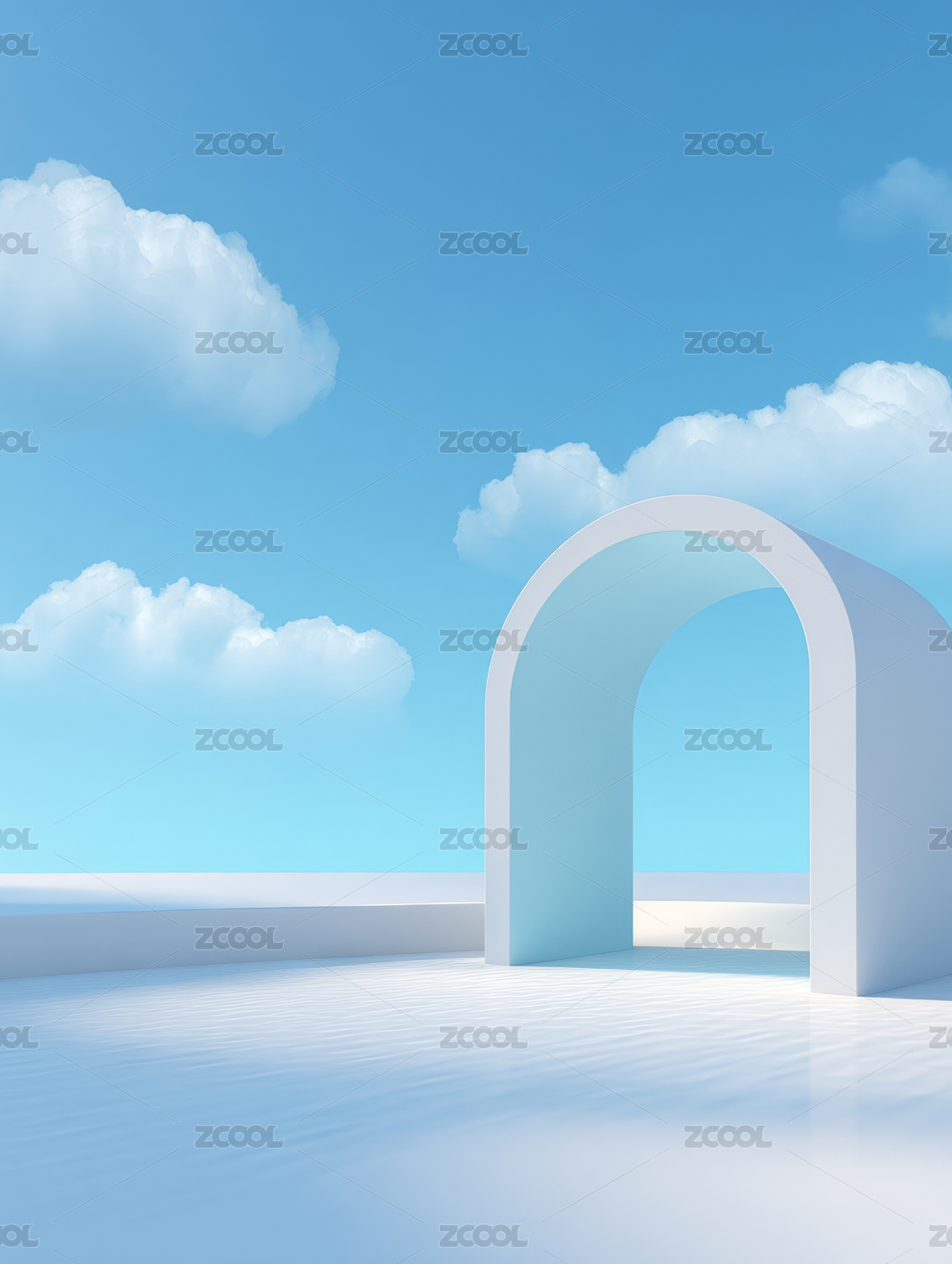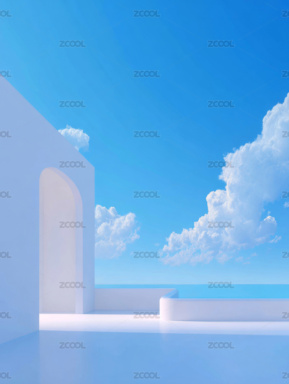 蓝天,白云,立方体,拱门,简洁,几何,户外,现代,建筑
