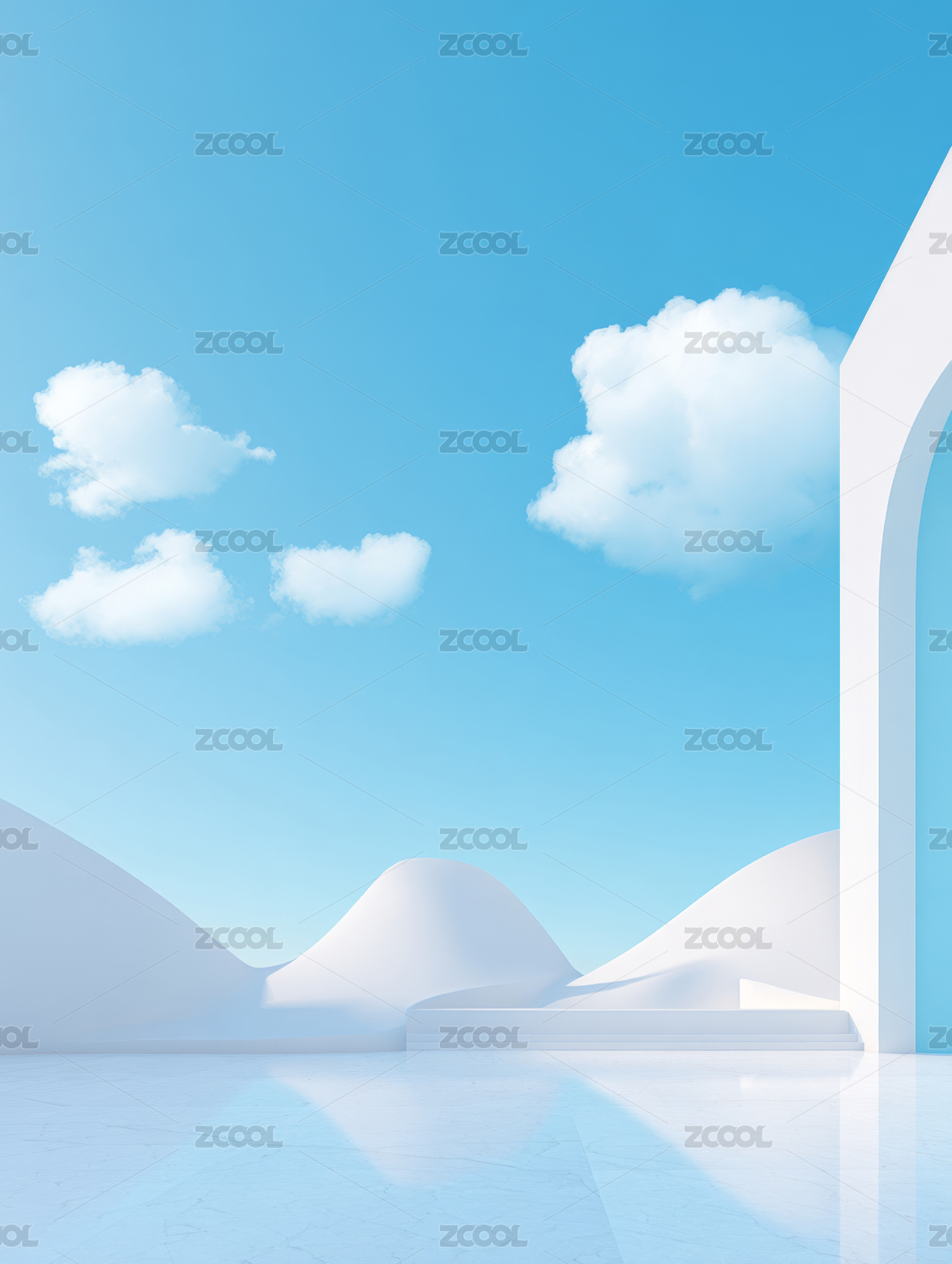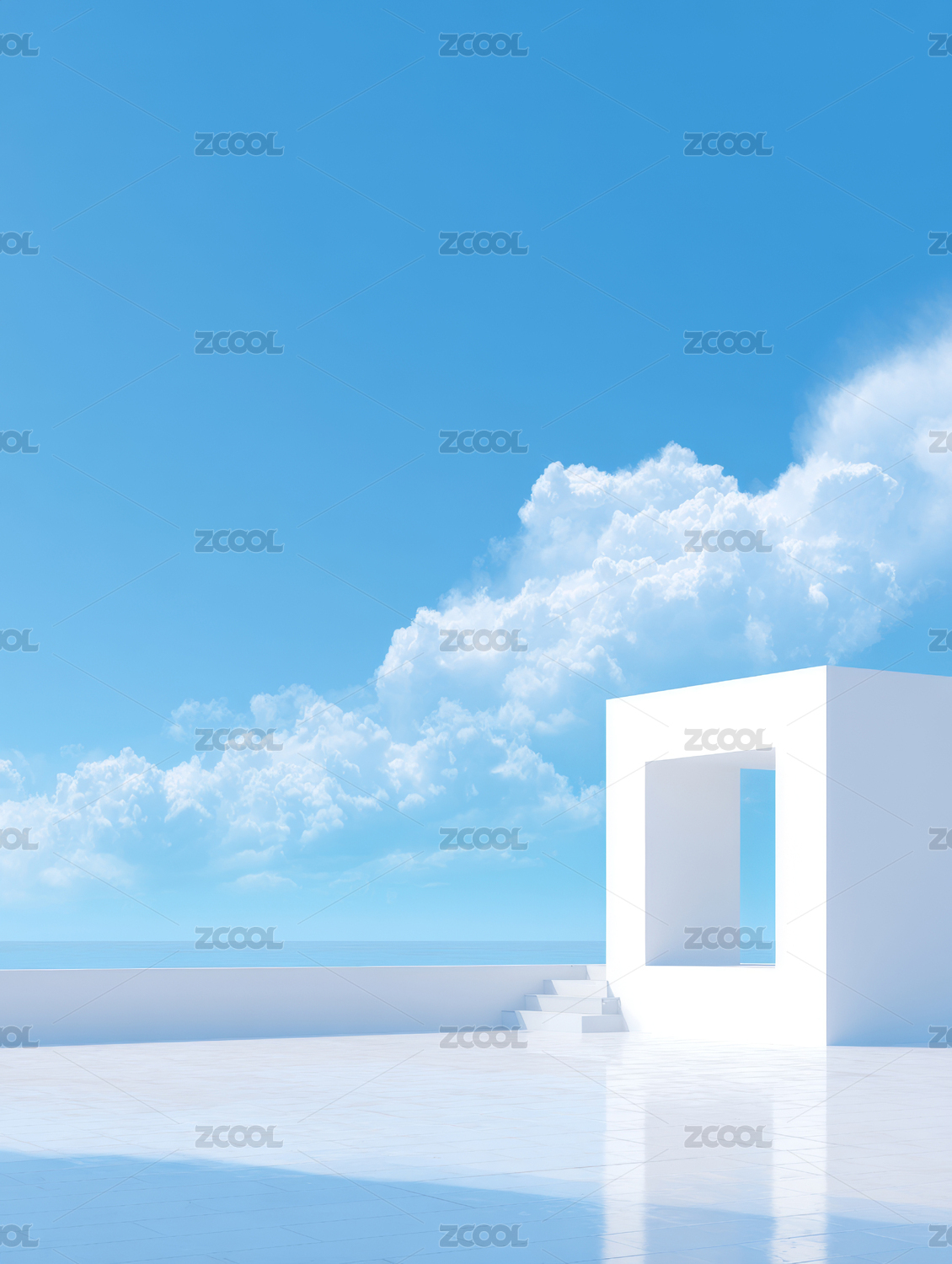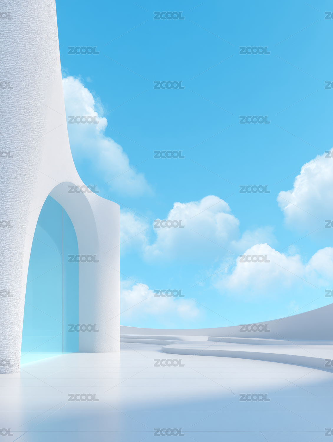 蓝天,白云,立方体,拱门,简洁,几何,户外,现代,建筑