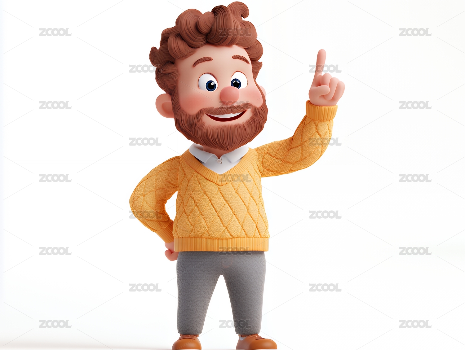 卡通人物黄色毛衣指天