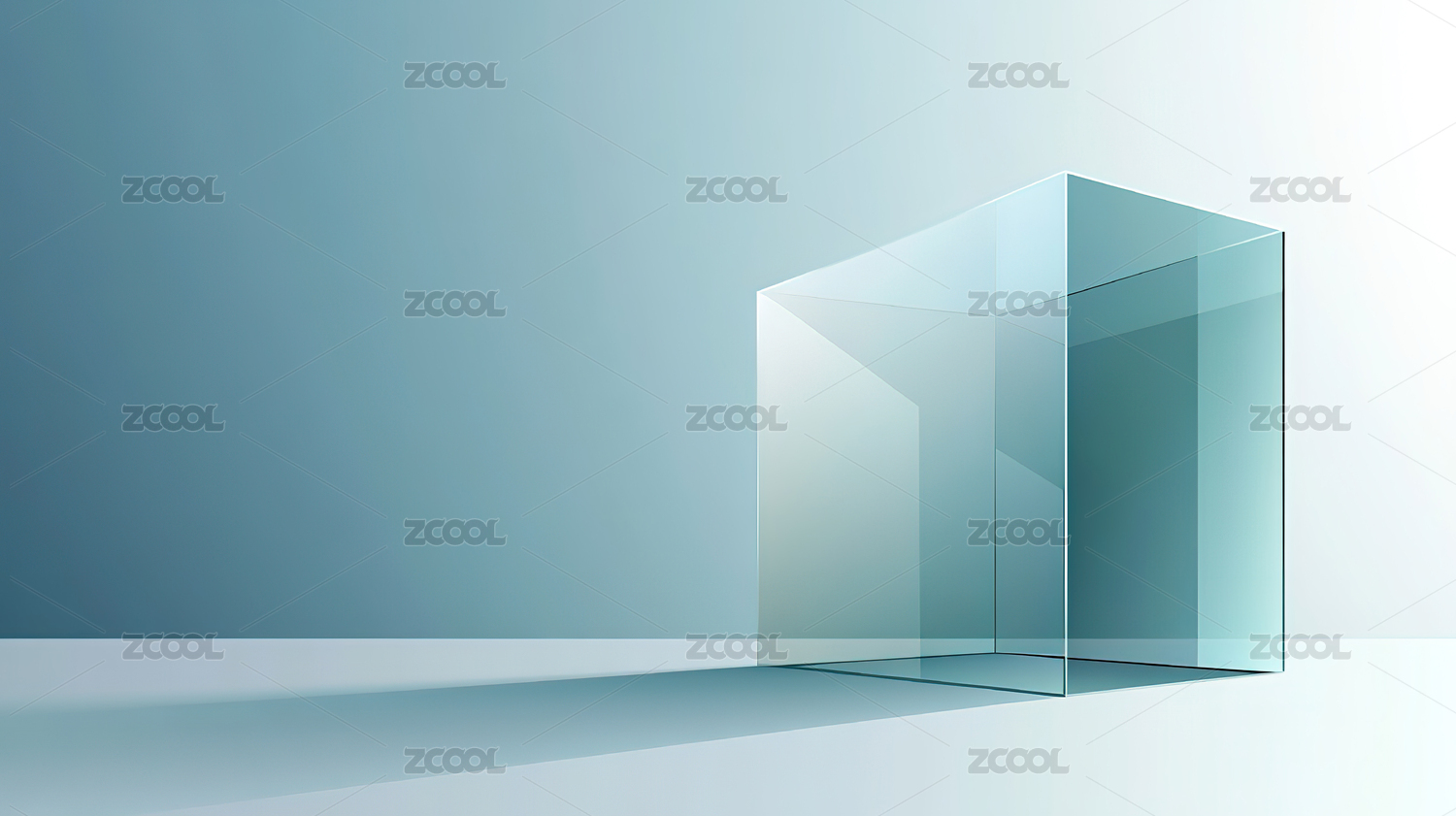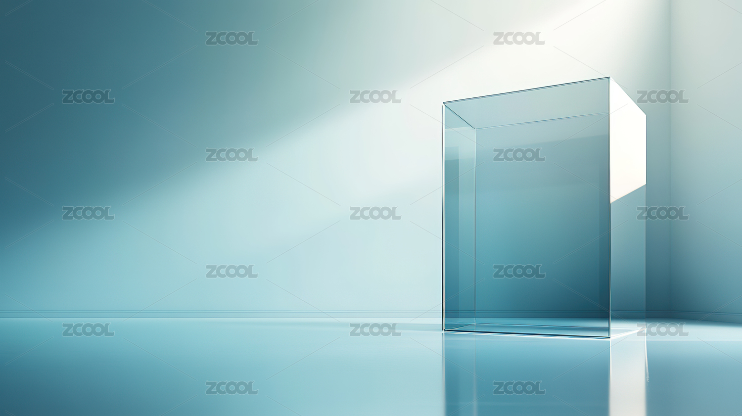 透明立方体置于浅蓝角落