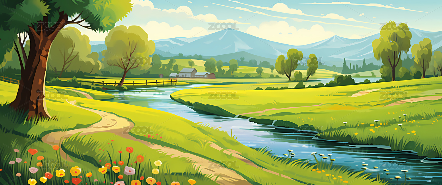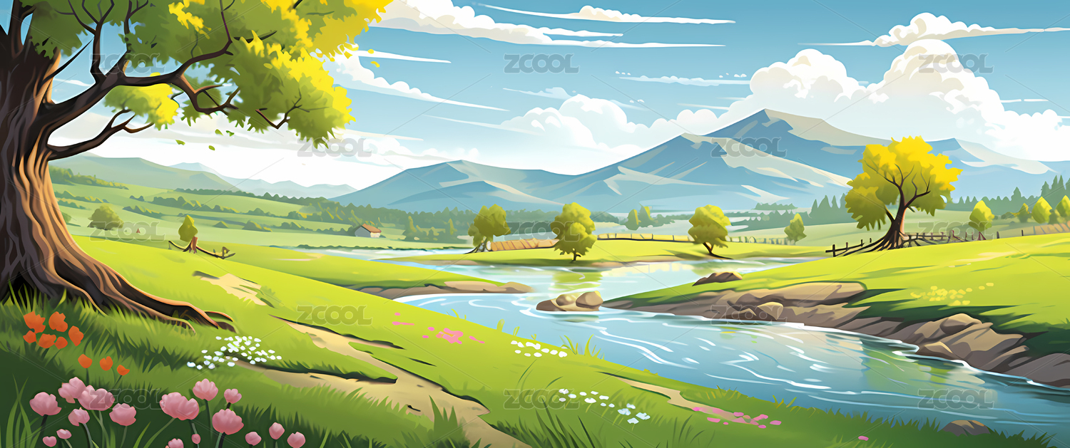 平原青草地插画
