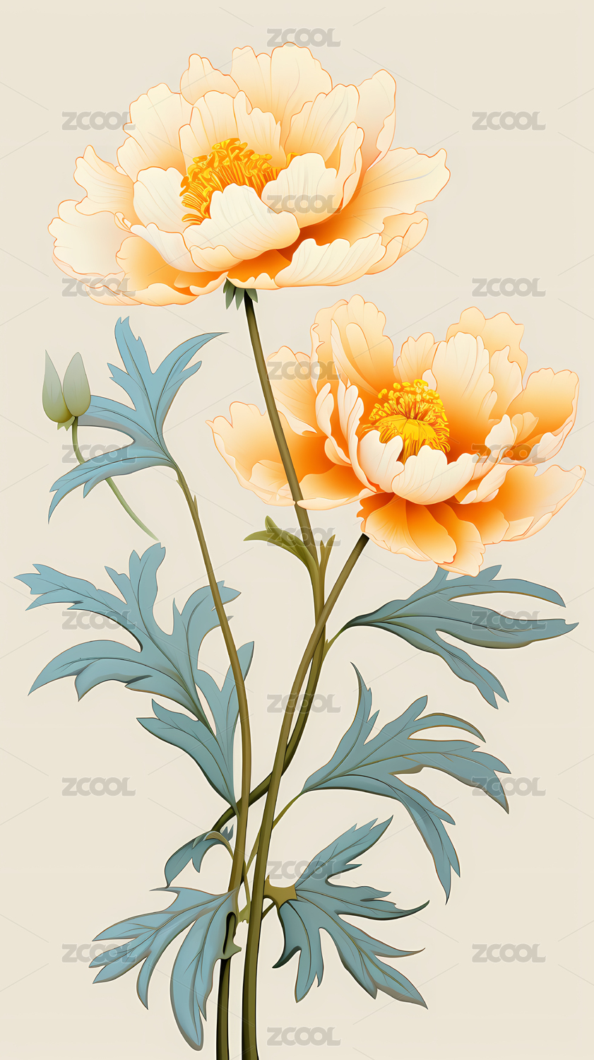 国潮风格牡丹花插画素材