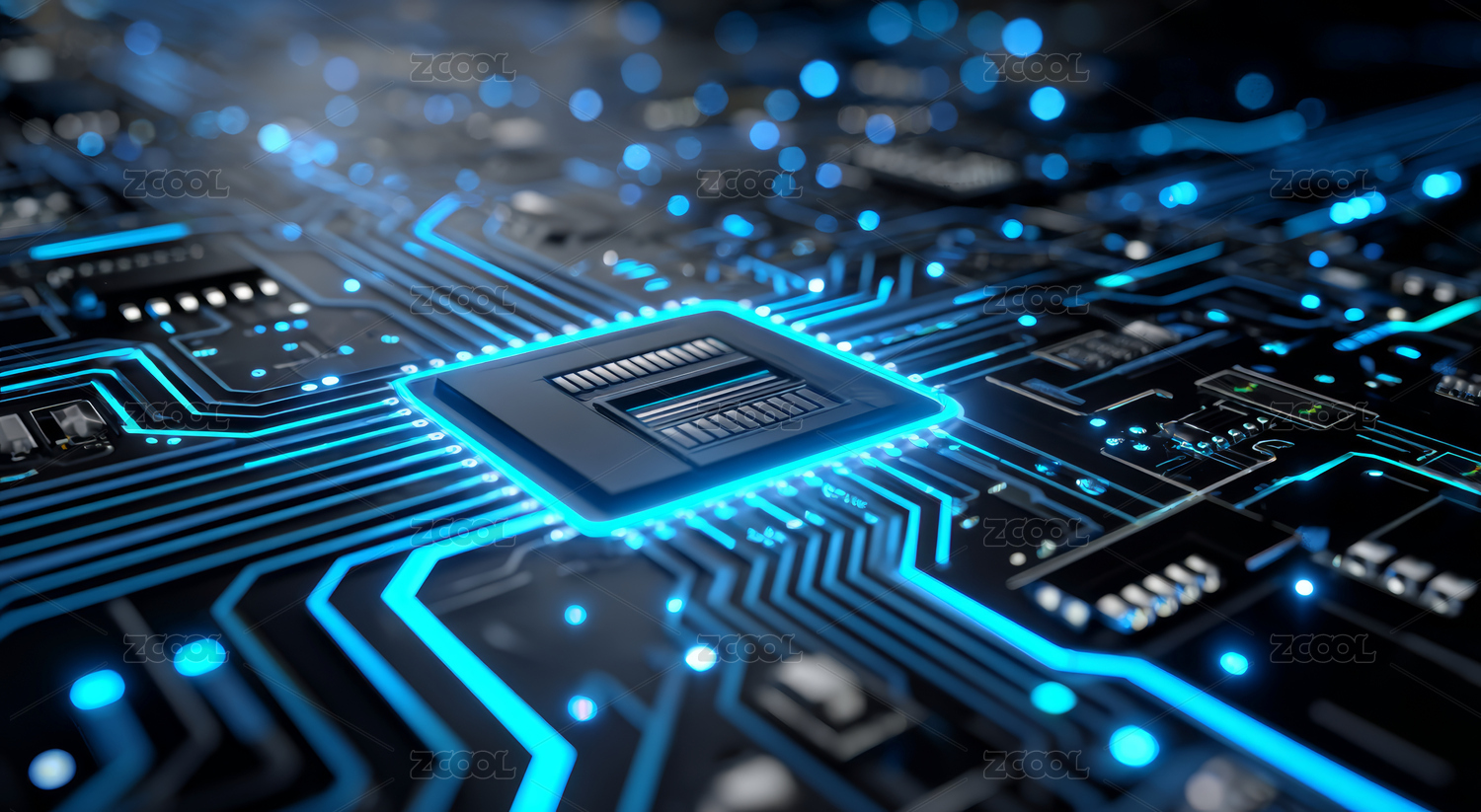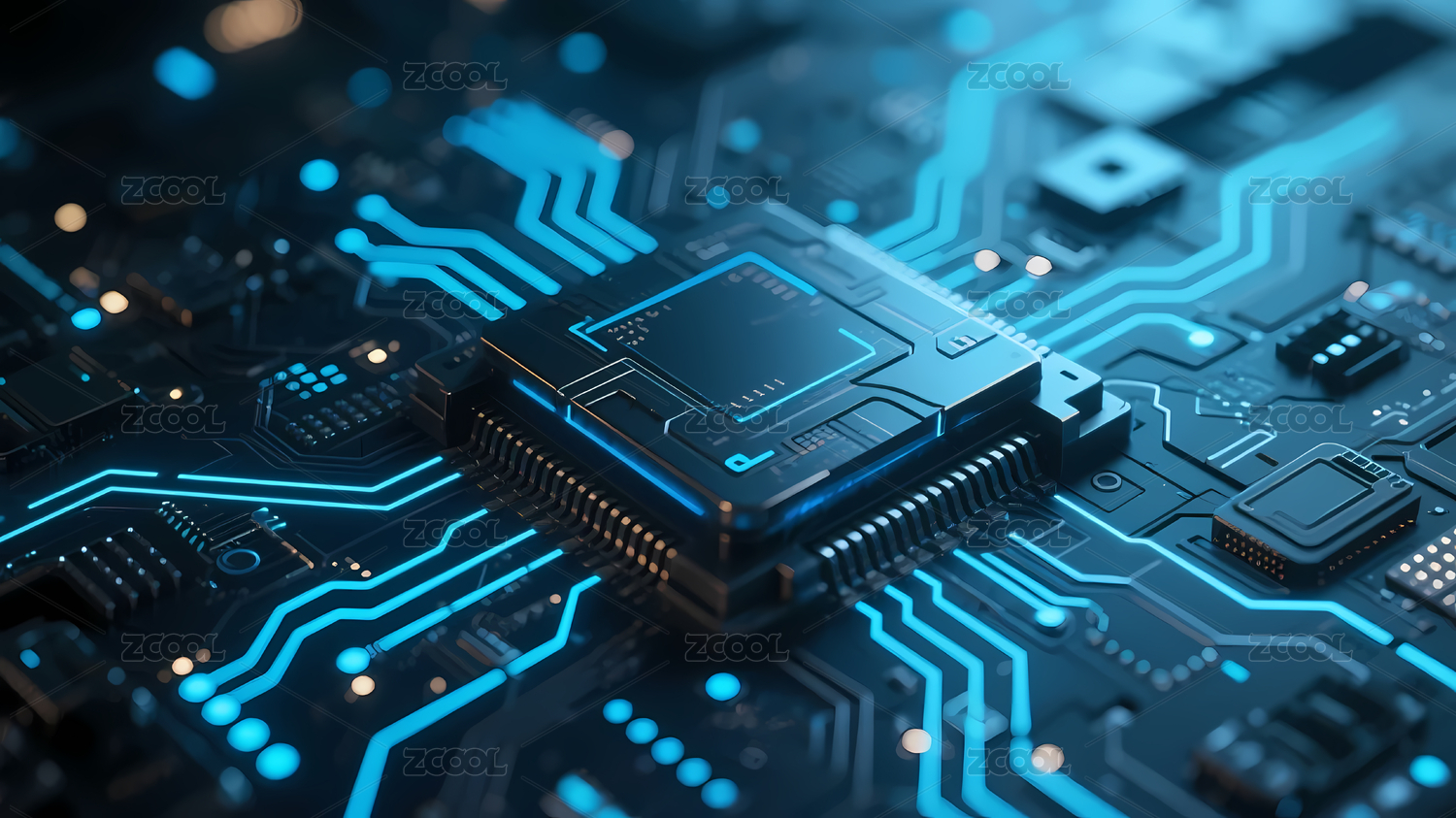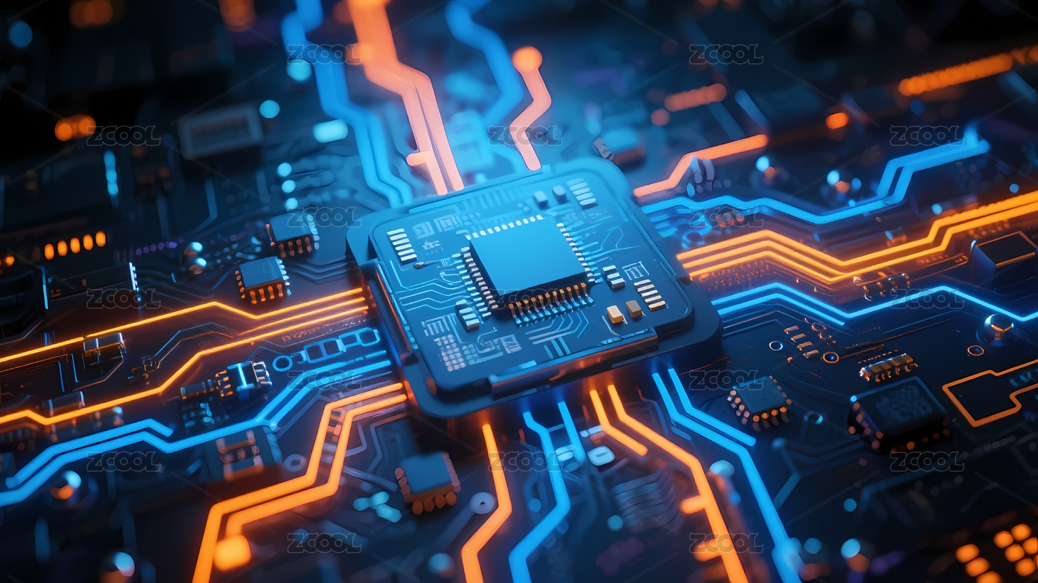 芯片,电路板,科技,视觉,蓝色,未来,红色,发光,深色,线路
