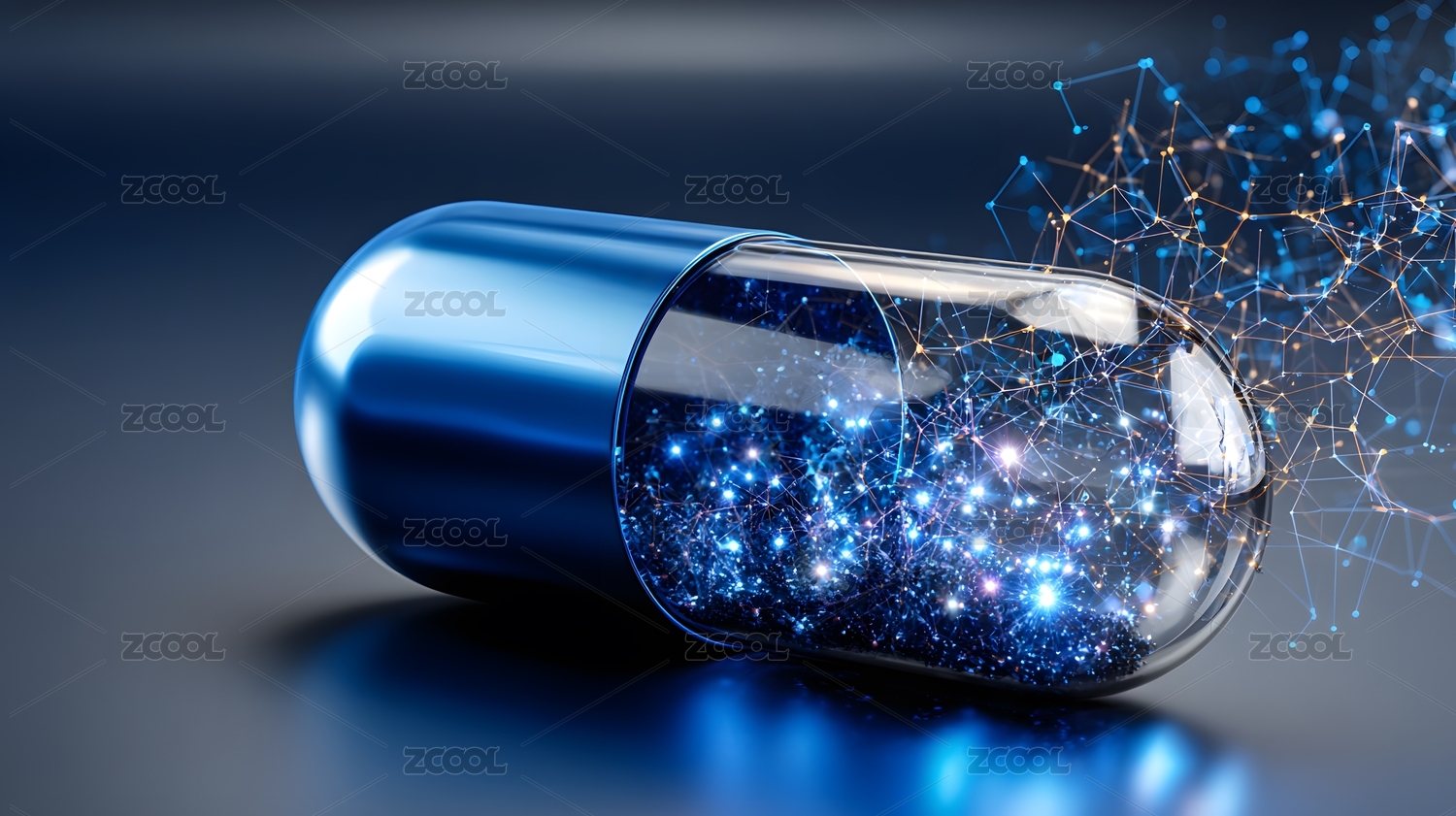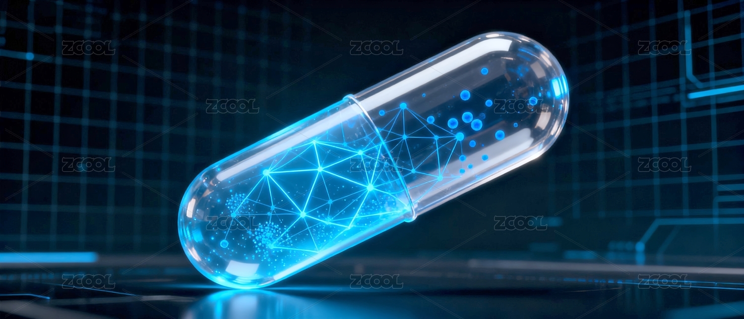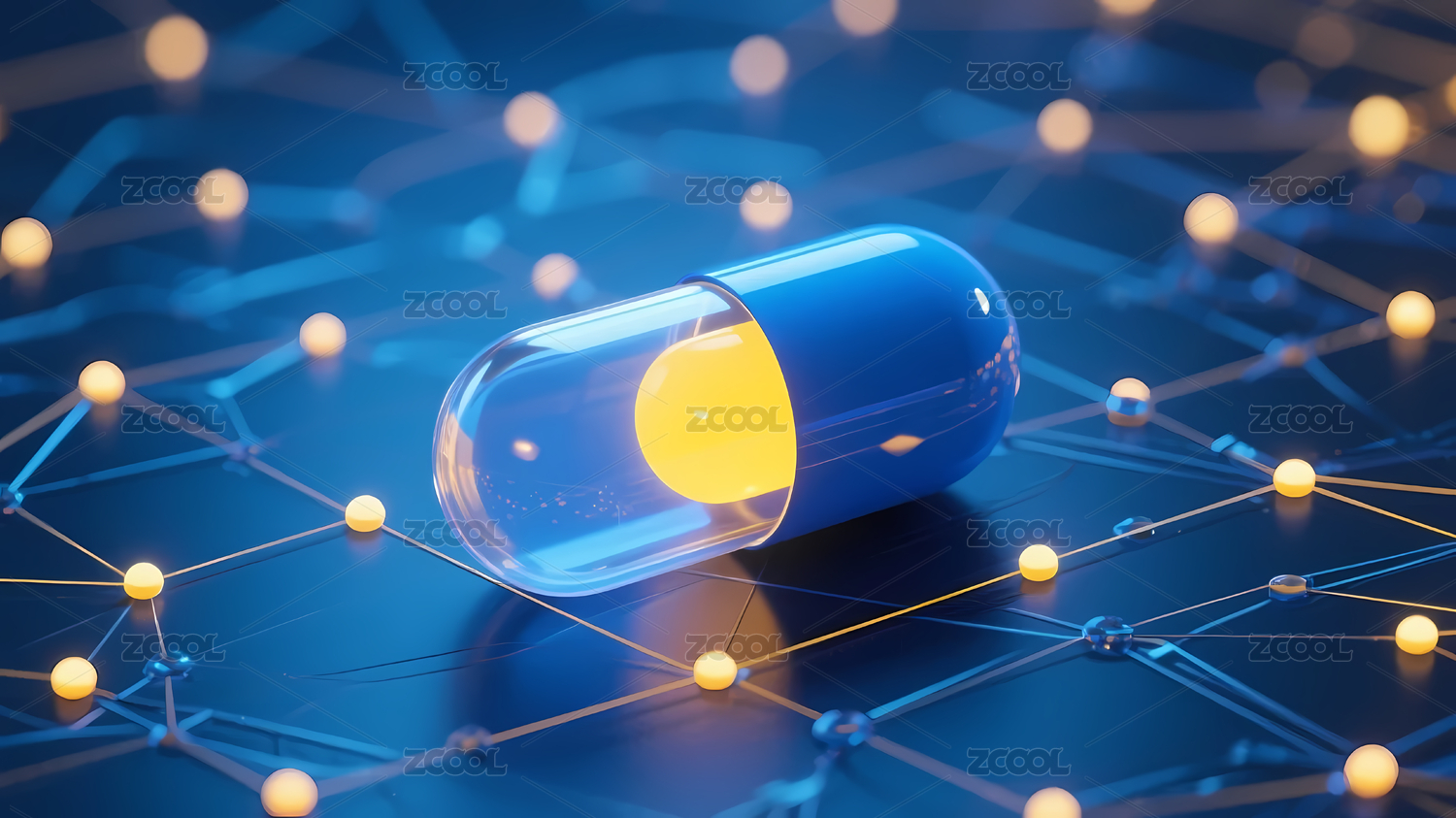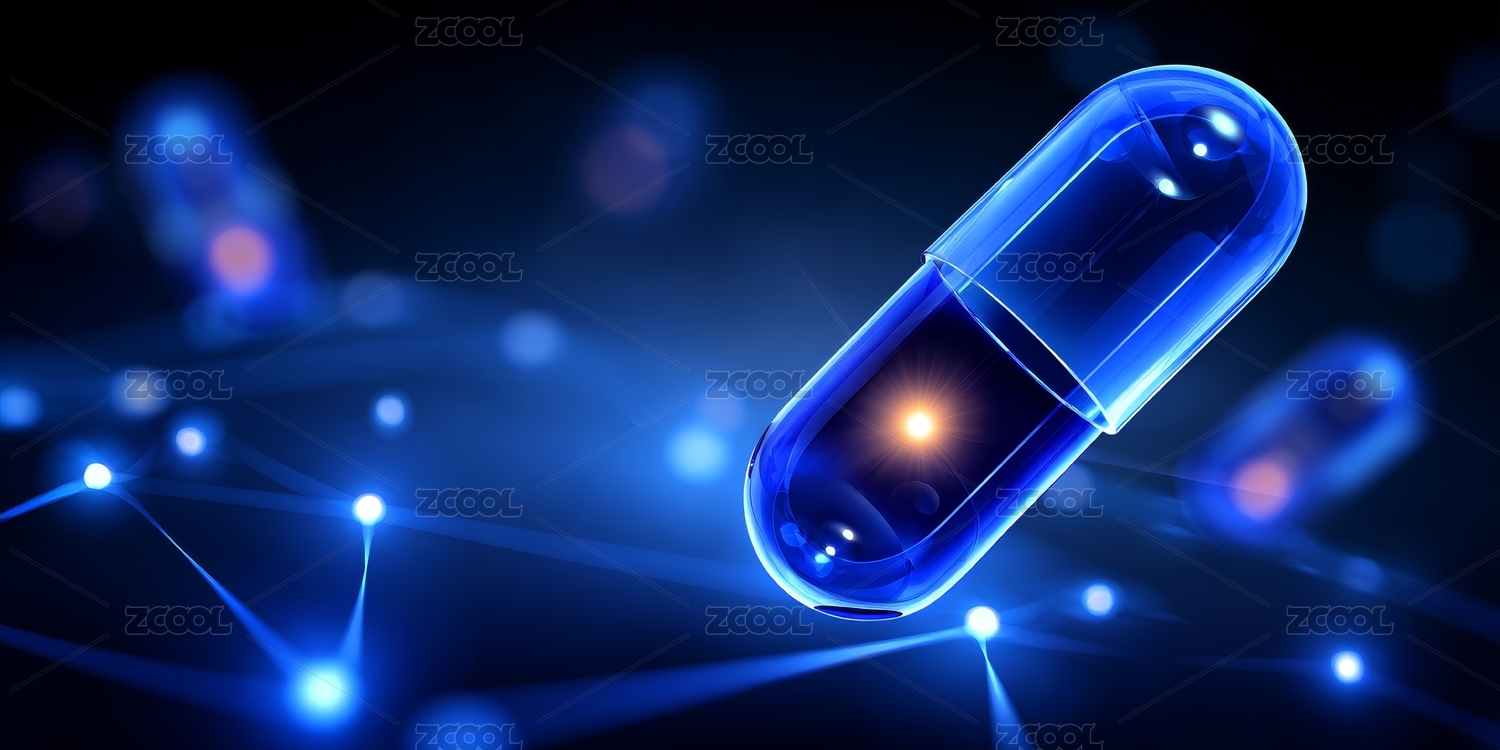 蓝色胶囊与网络状背景
