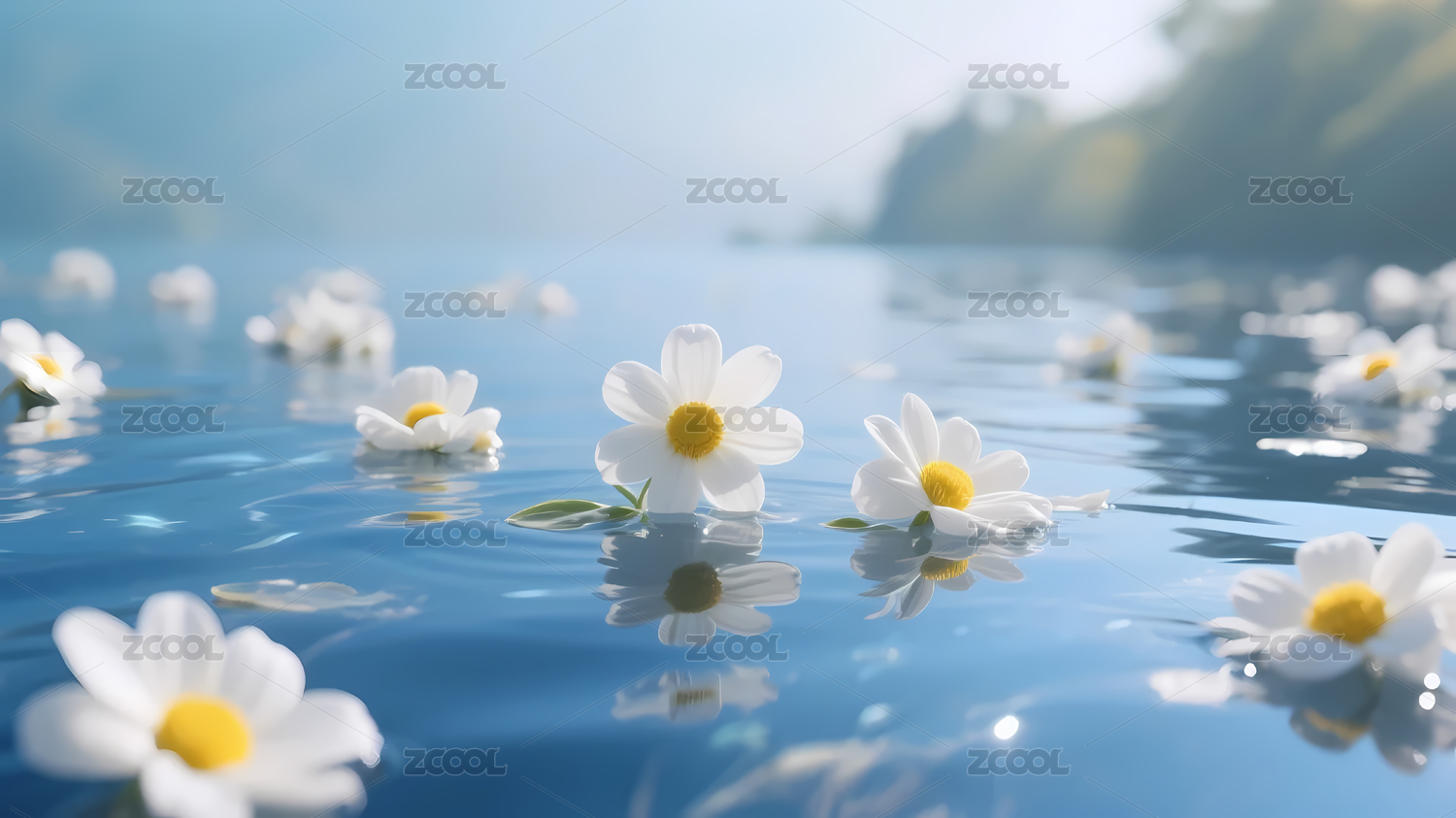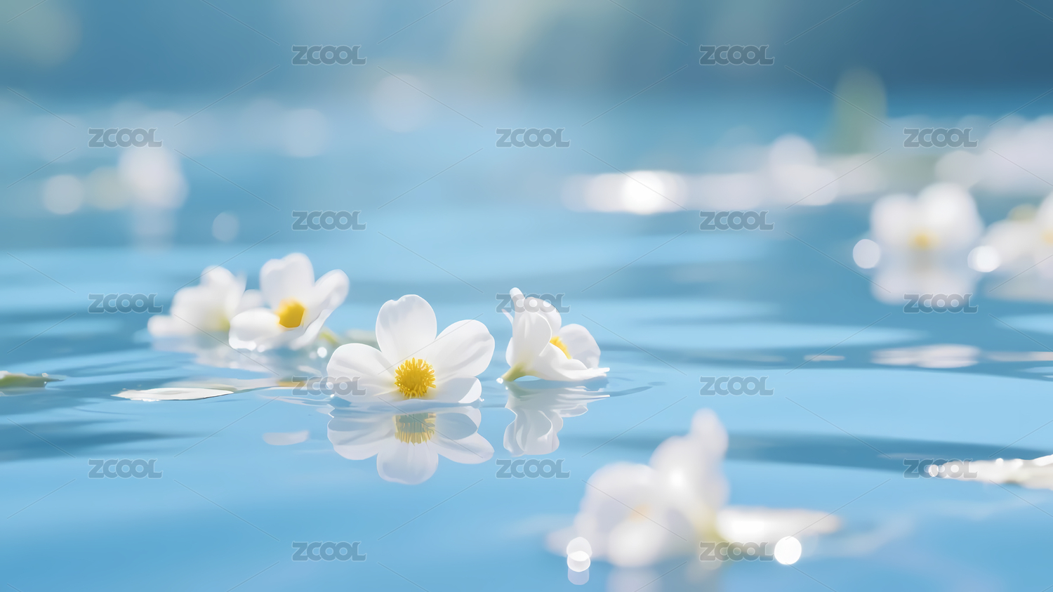 花朵,阳光,视觉,蓝色,白色,宁静,漂浮,水面,光斑,美丽