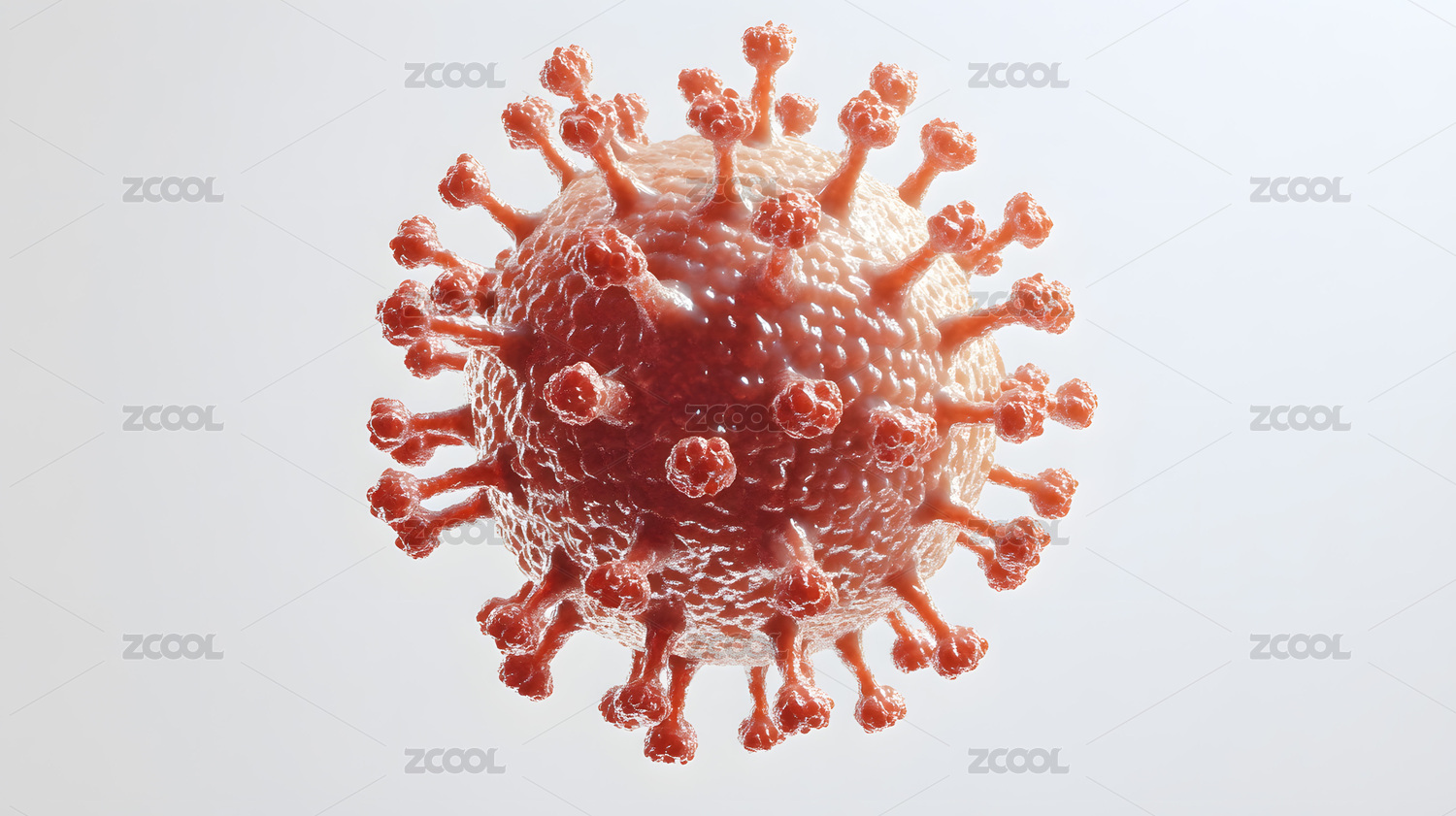 红色冠状病毒粒子特写