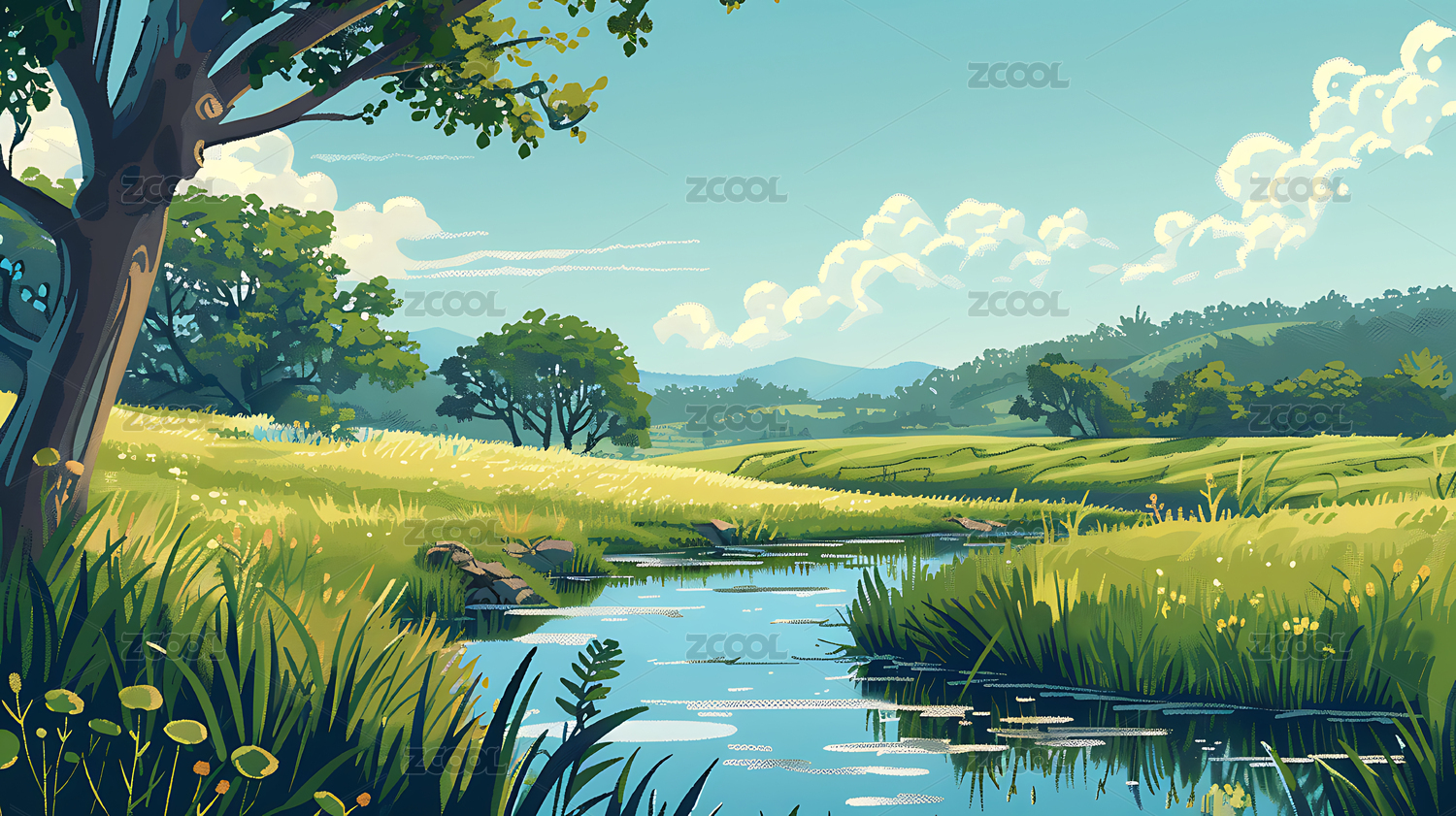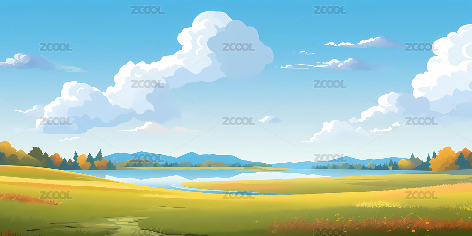 平原青草地插画